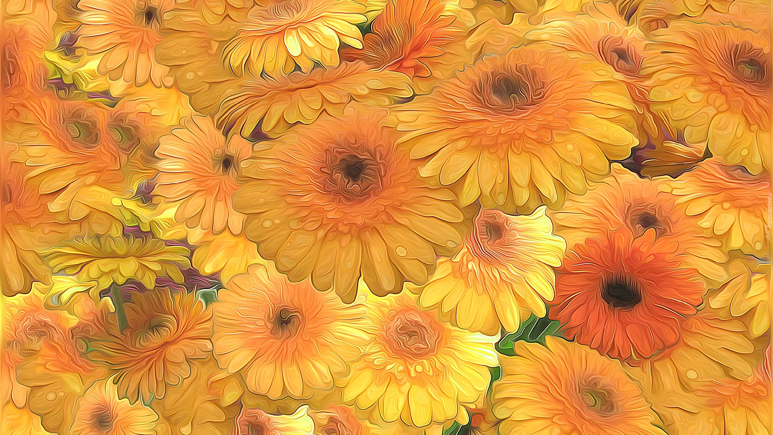 Edytor tapety: Żółte gerbery w grafice fractalius