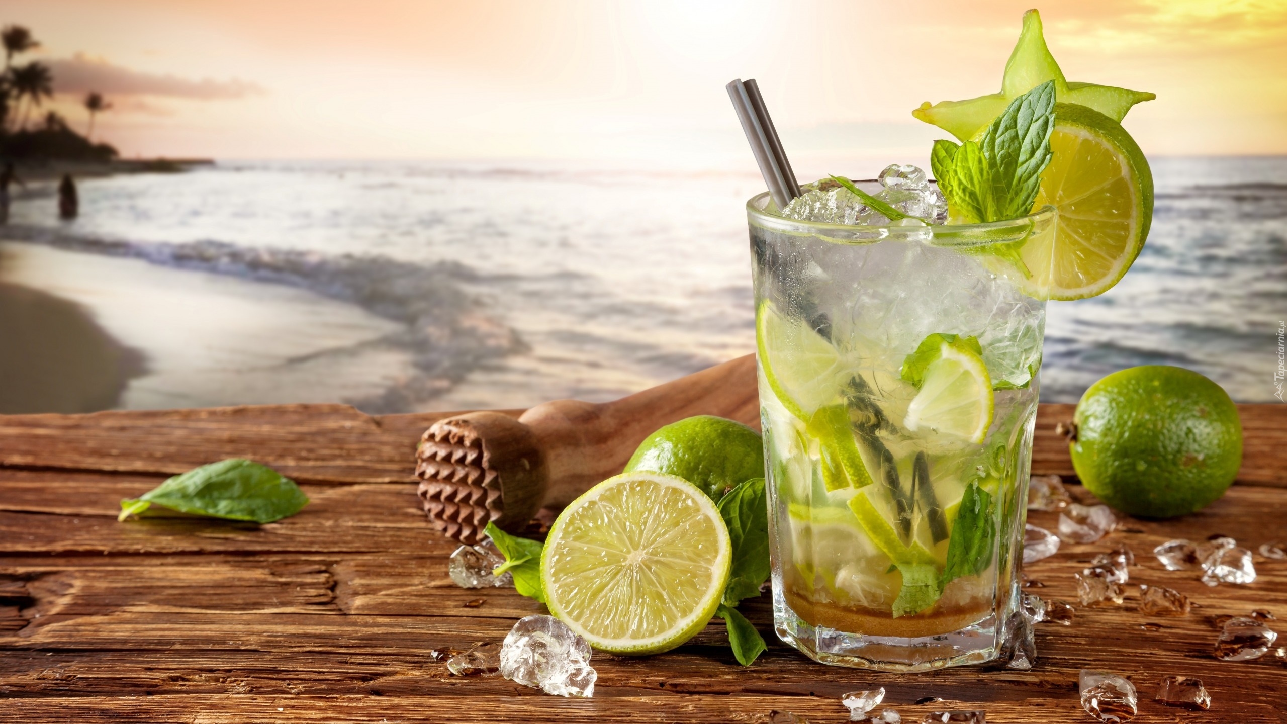 Edytor tapety: Drink w szklance i limonki obok