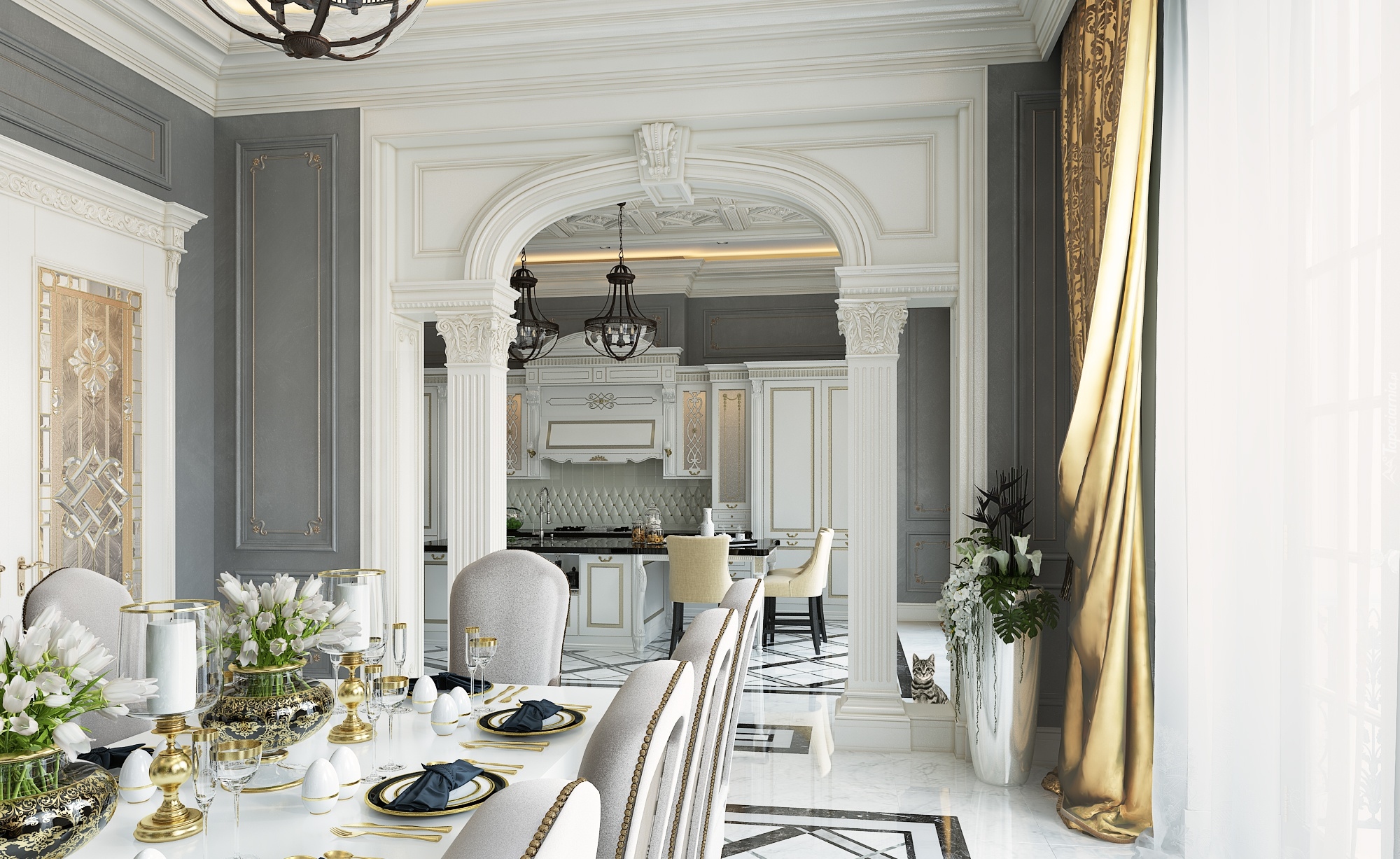 Edytor tapety: Jadalnia z widokiem na kuchnię
