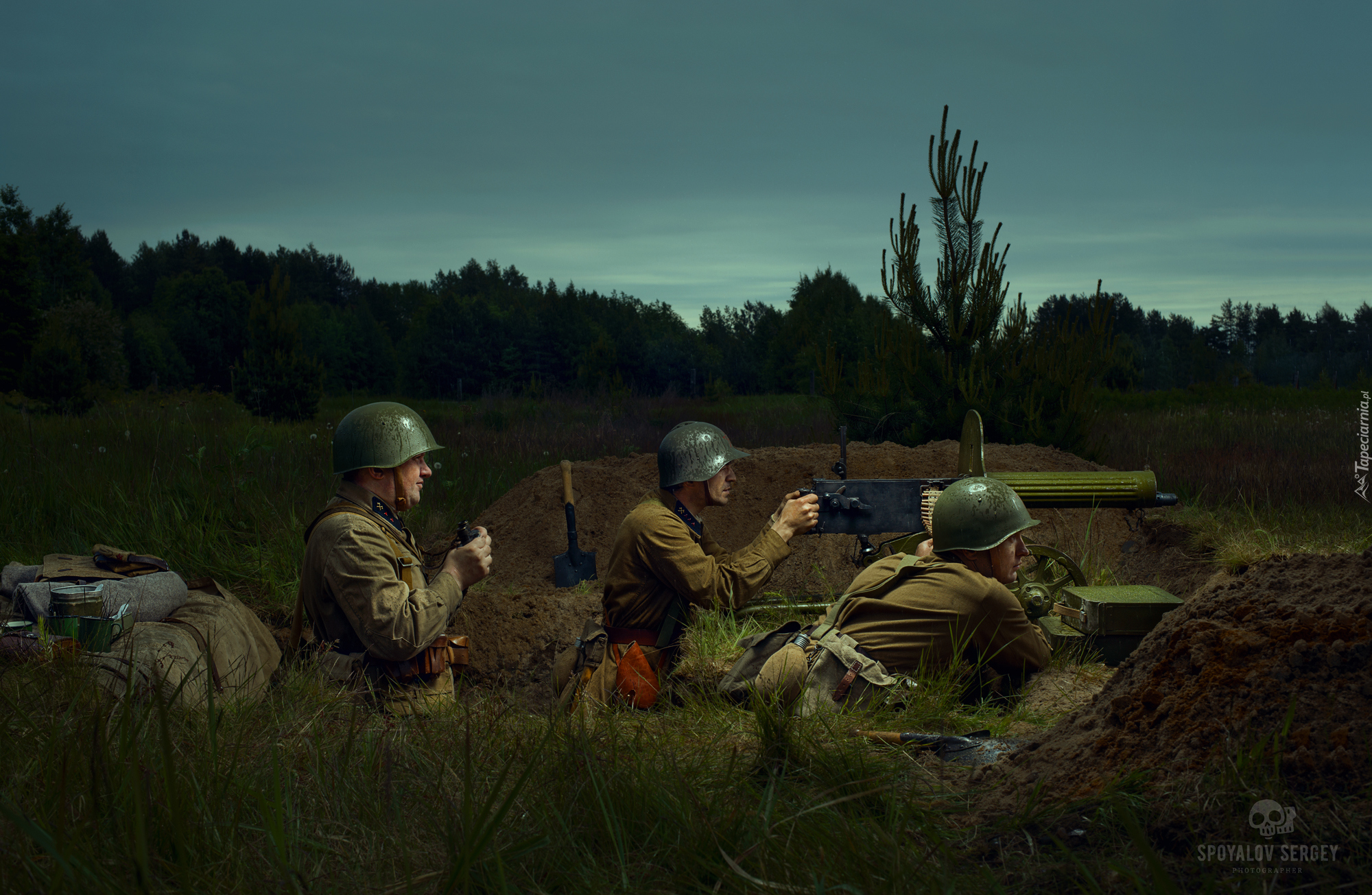 Edytor tapety: Żołnierze w okopie przygotowani do walki