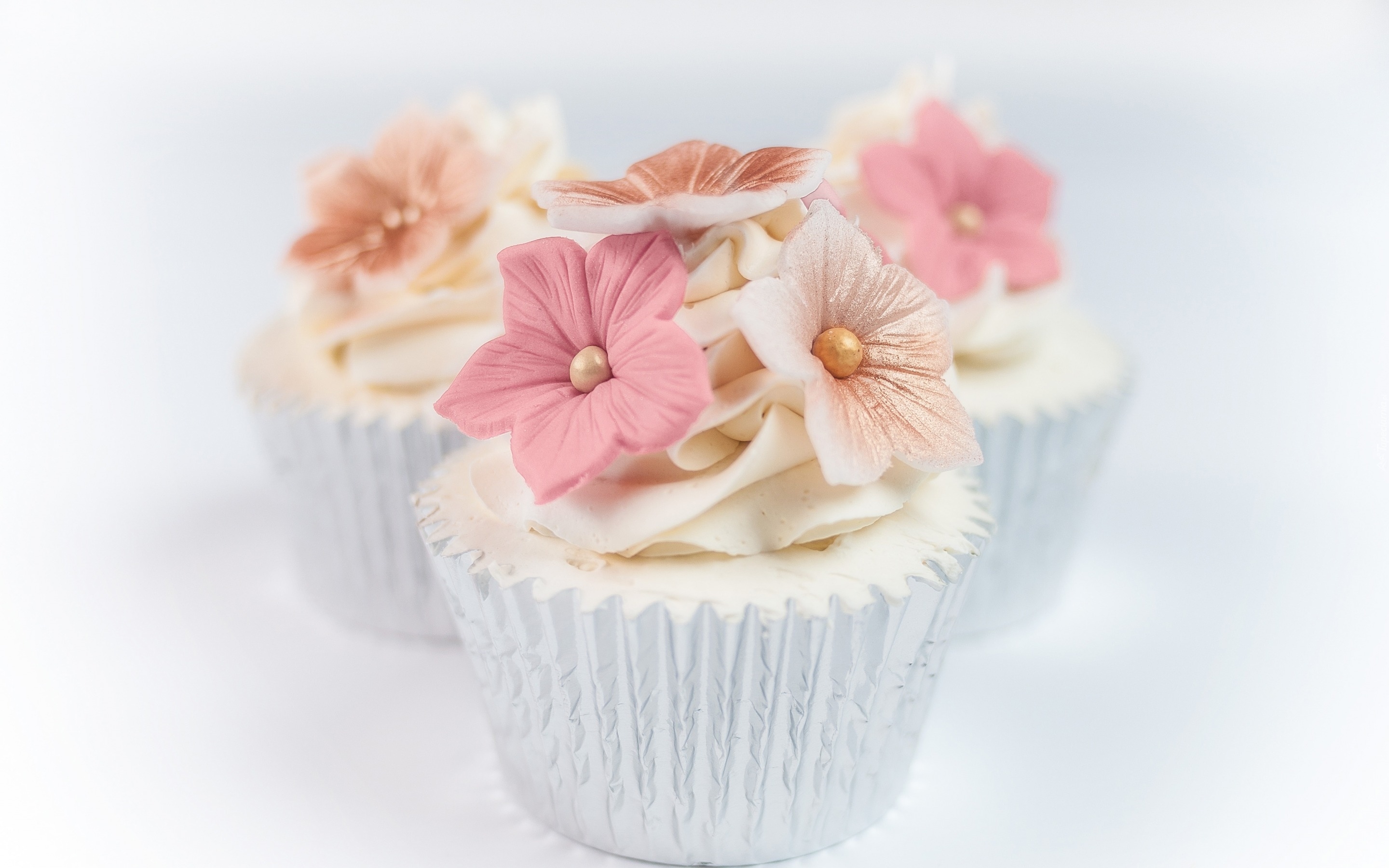 Edytor tapety: Kremowe babeczki udekorowane kwiatkami