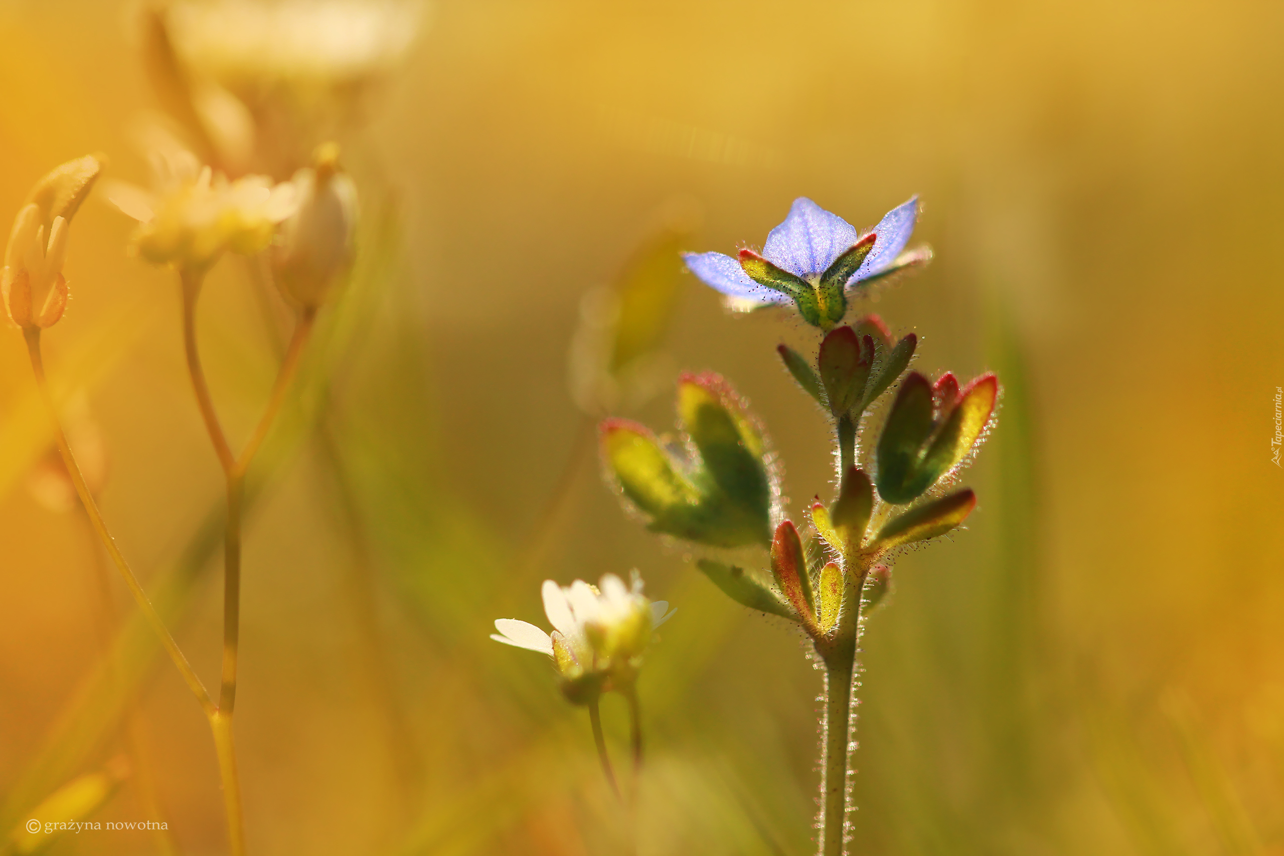 Edytor tapety: Niebieski kwiat przetacznika w słońcu