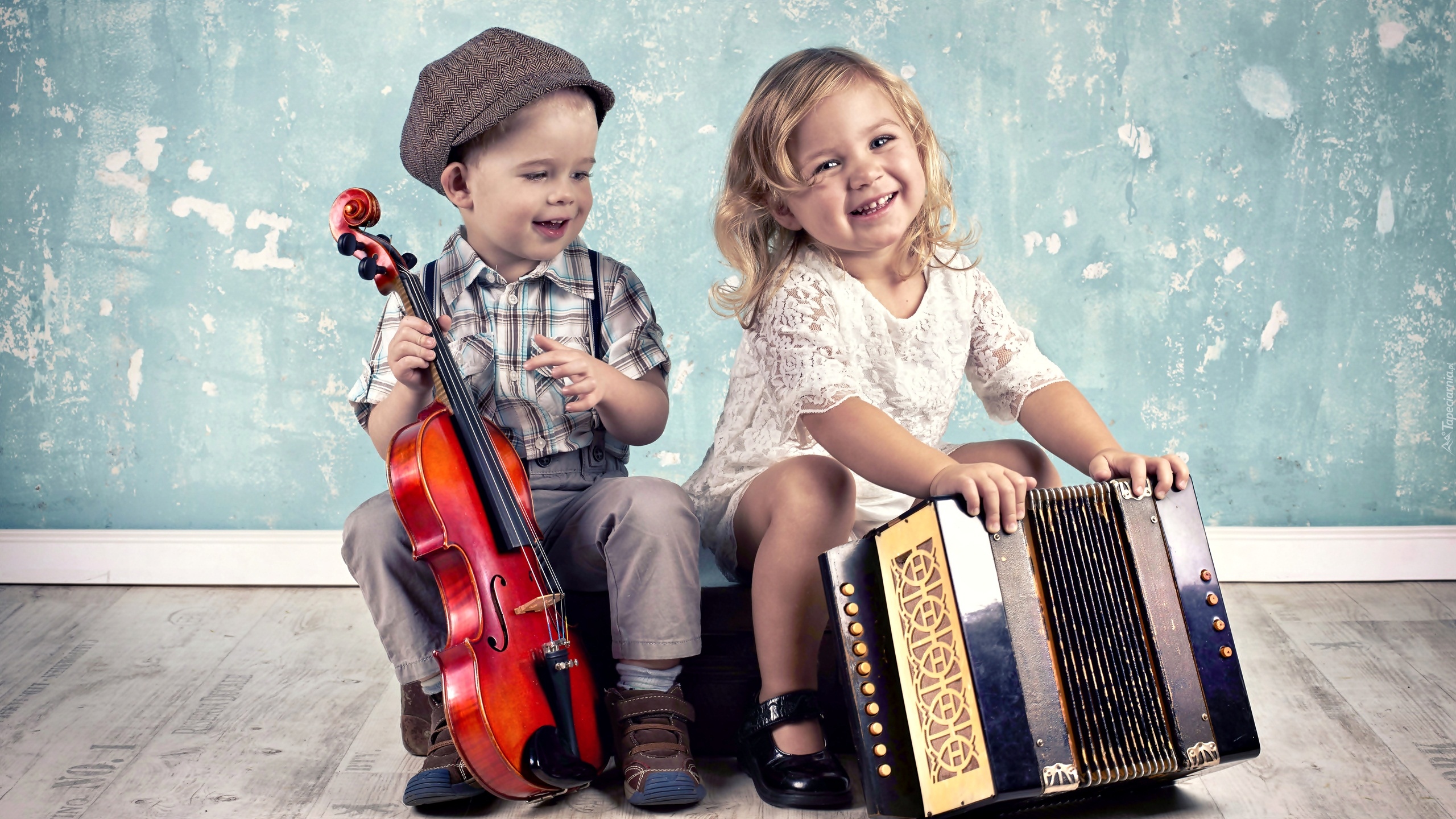 Edytor tapety: Chłopiec ze skrzypcami i dziewczynka z akordeonem
