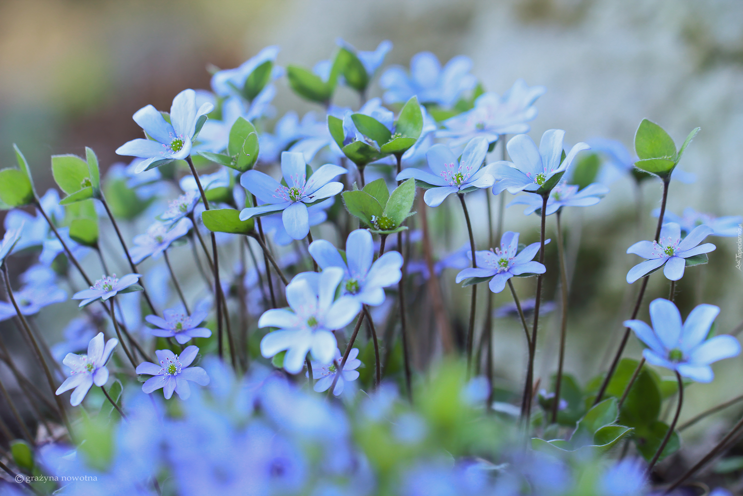 Edytor tapety: Niebieskie drobne przylaszczki w rozmyciu