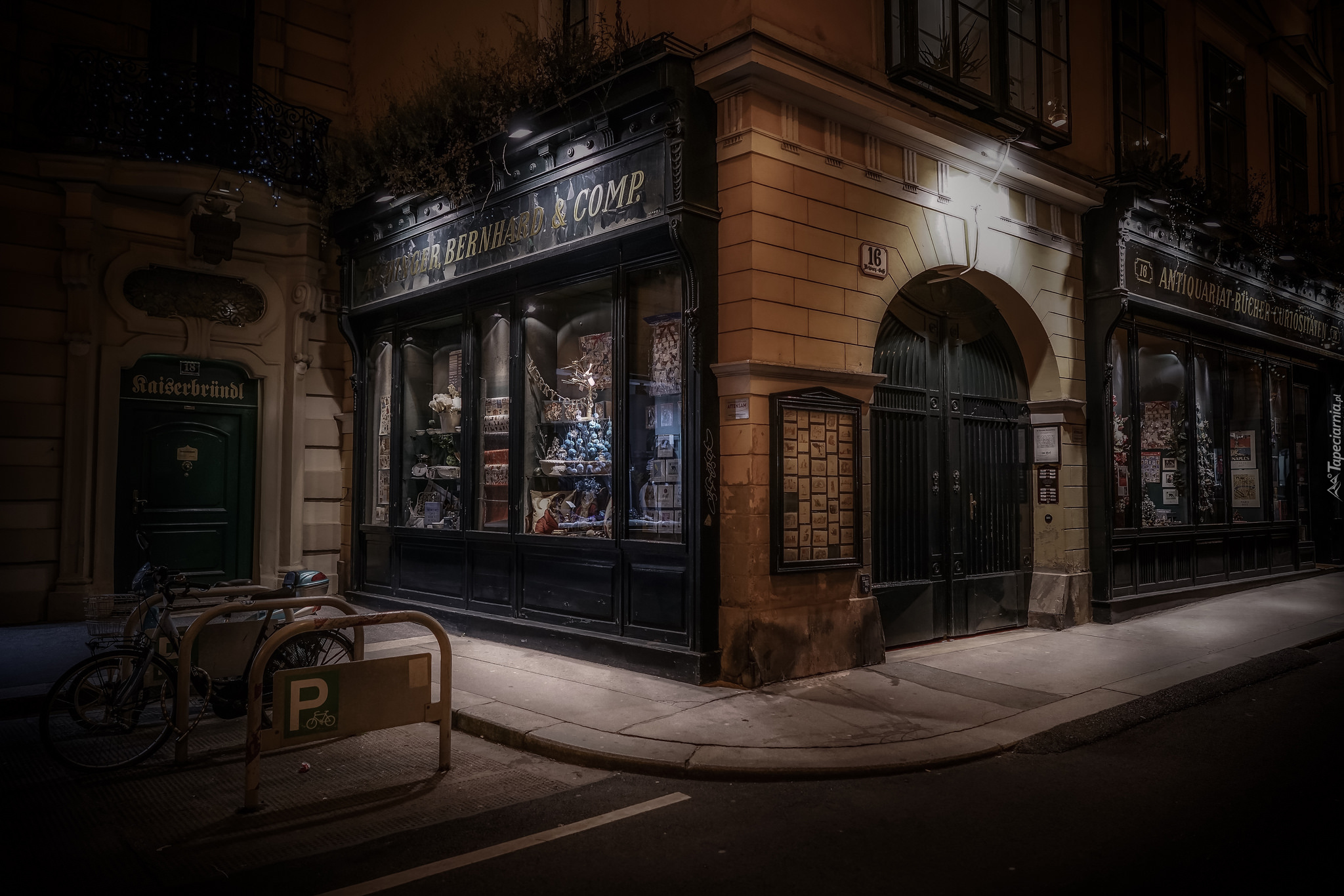 Edytor tapety: Oświetlony sklep przy wiedeńskiej ulicy