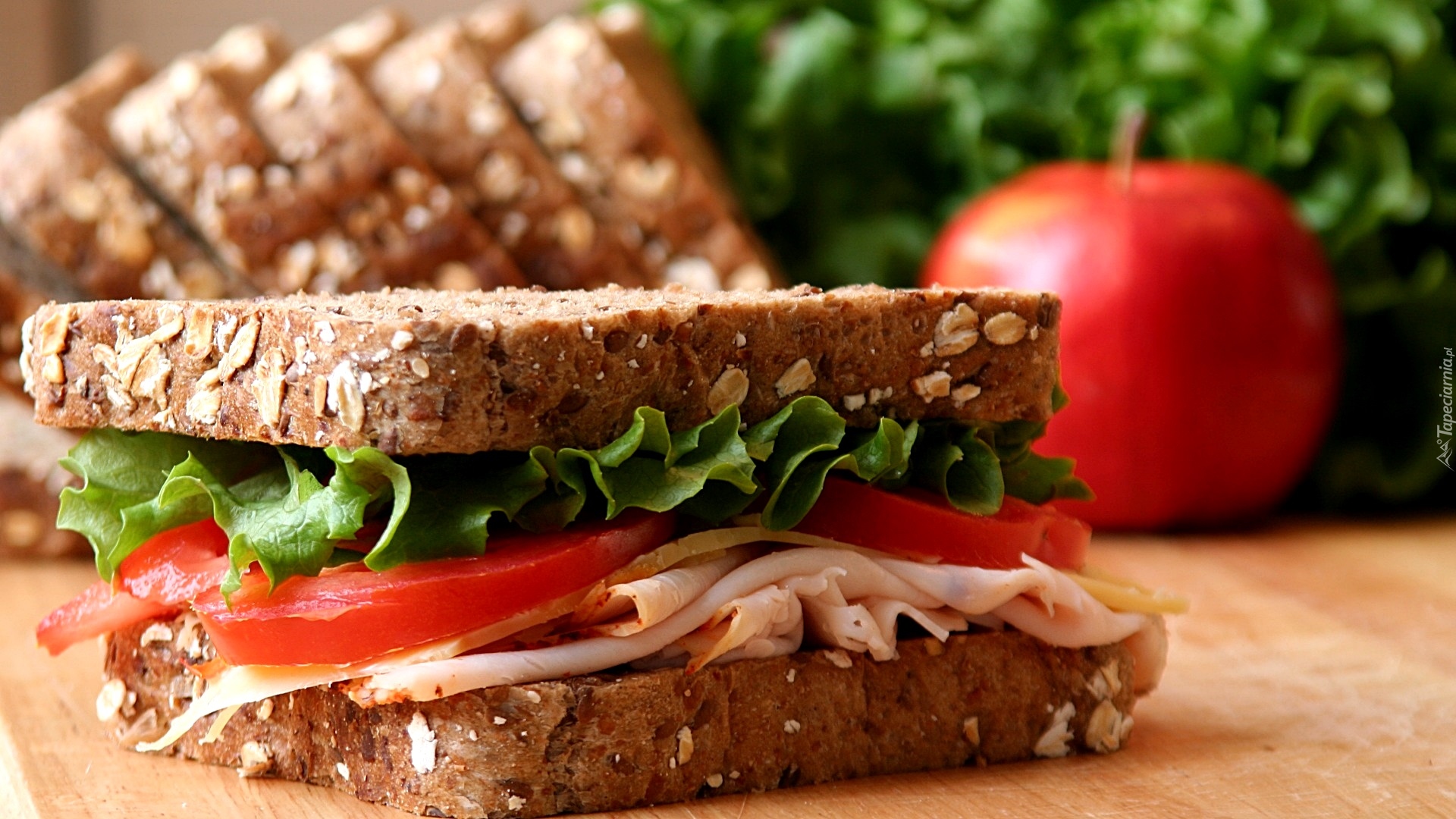 Edytor tapety: Kanapka z wędliną, pomidorem i sałatą