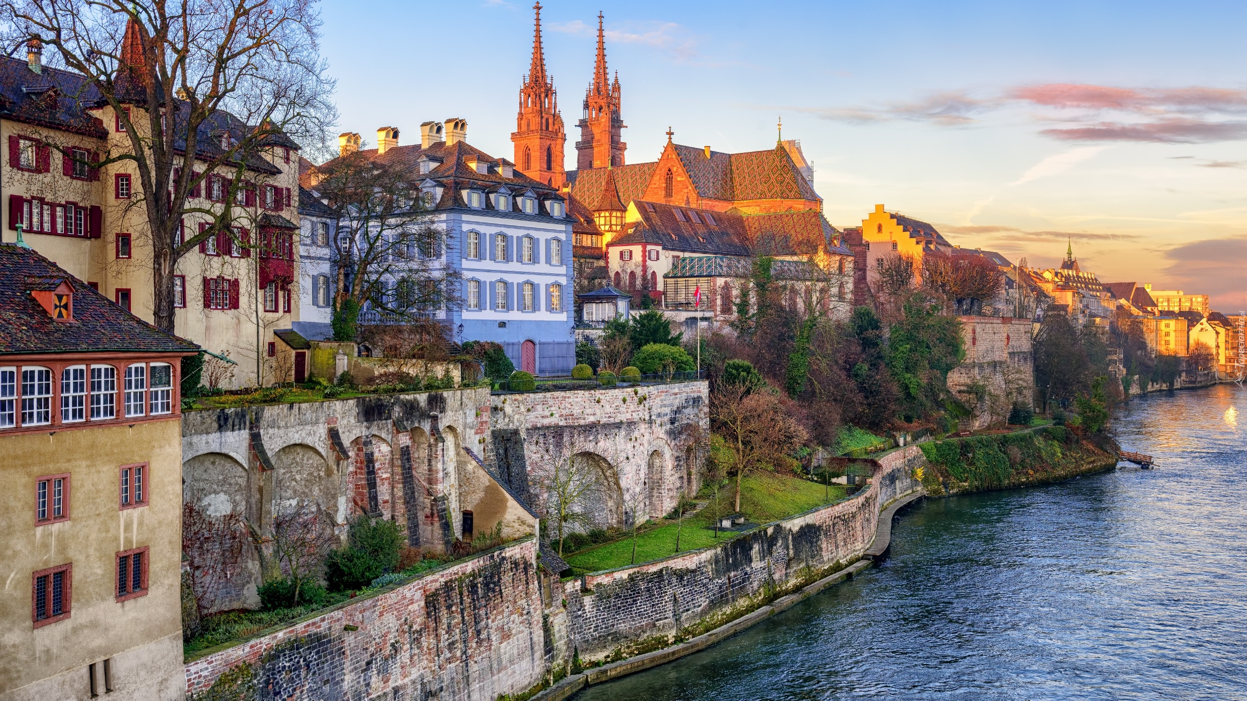 Edytor tapety: Domy i katedra nad Renem w Bazylei