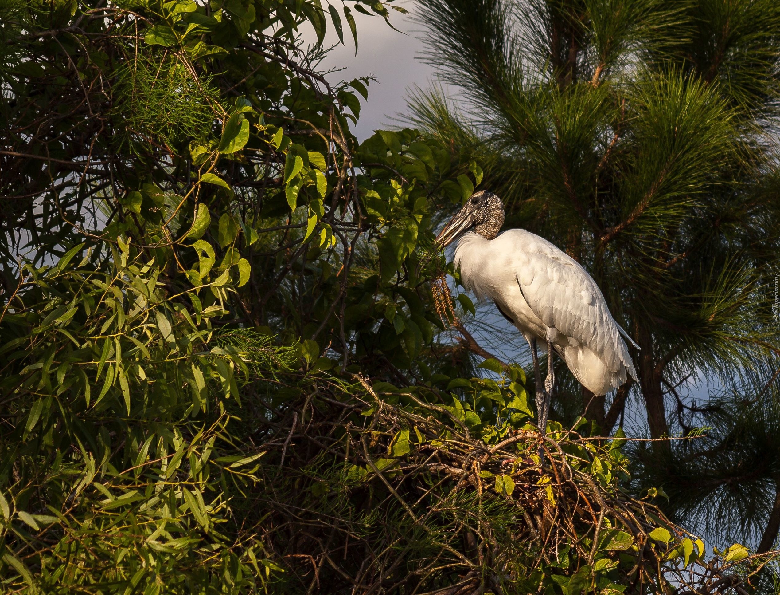 Edytor tapety: Dławigad amerykański w gnieździe na drzewie