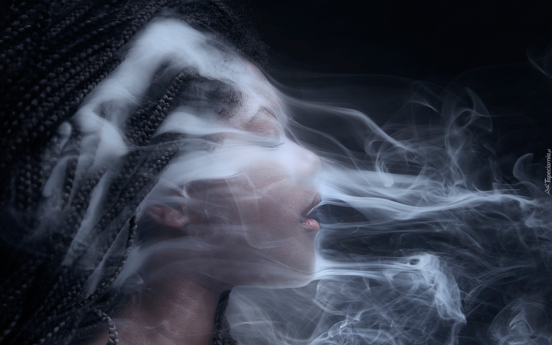 Edytor tapety: Brunetka z dymiącymi warkoczykami