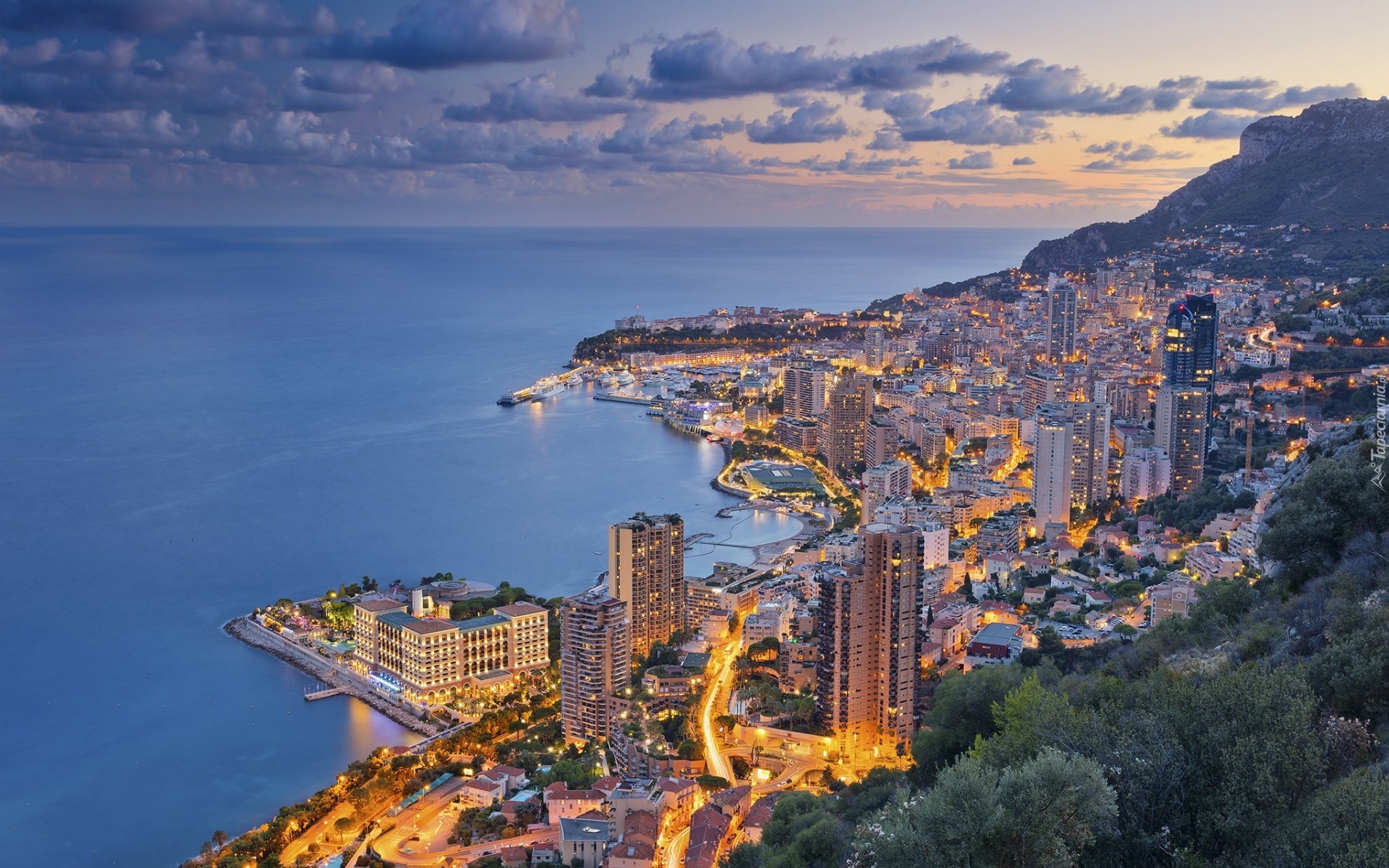 Edytor tapety: Widok na oświetlone Monte Carlo i Morze Liguryjskie