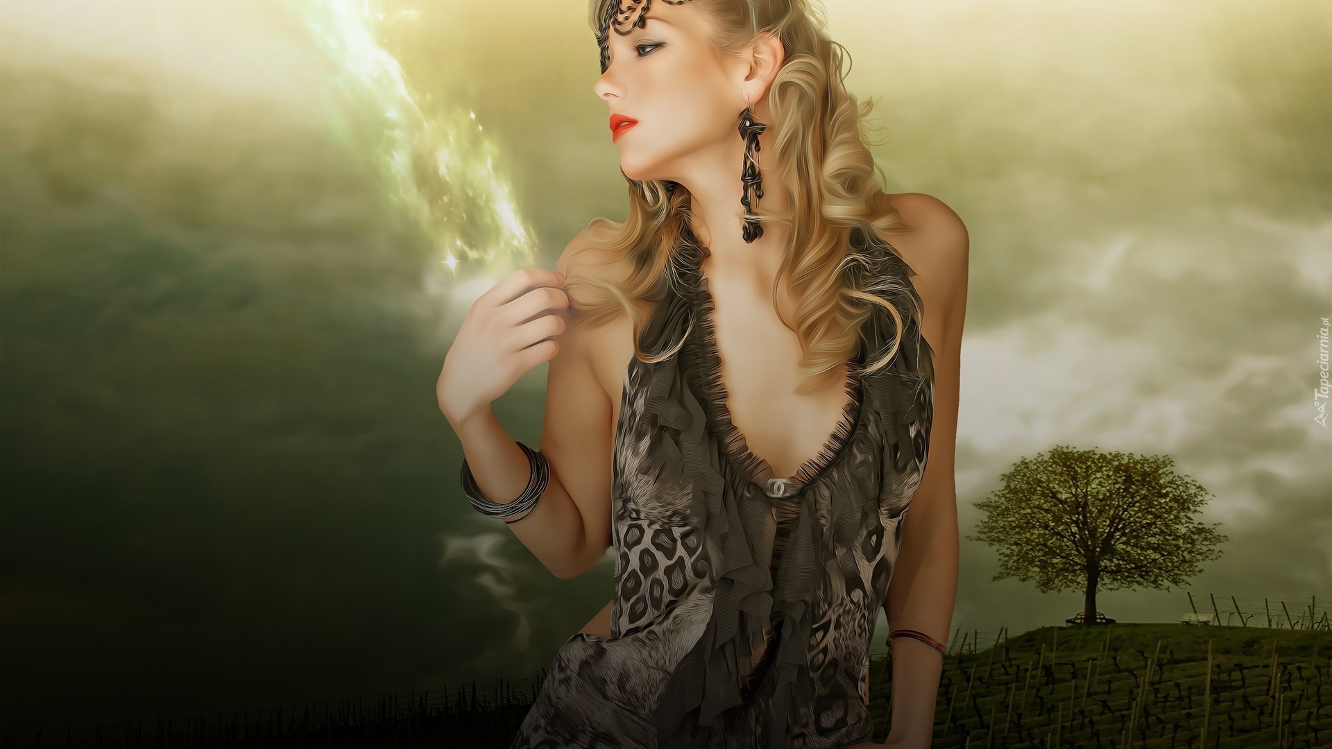Edytor tapety: Piękna kobieta w biżuterii w grafice fractalius