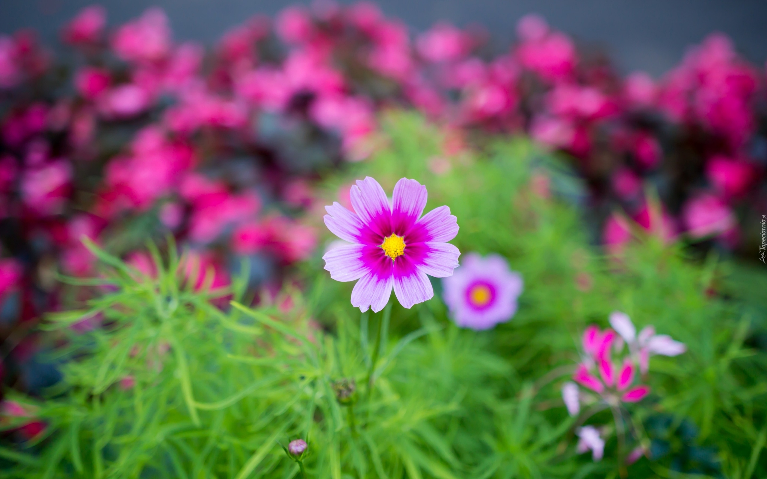 Edytor tapety: Różowy kwiat kosmei na rozmytym tle