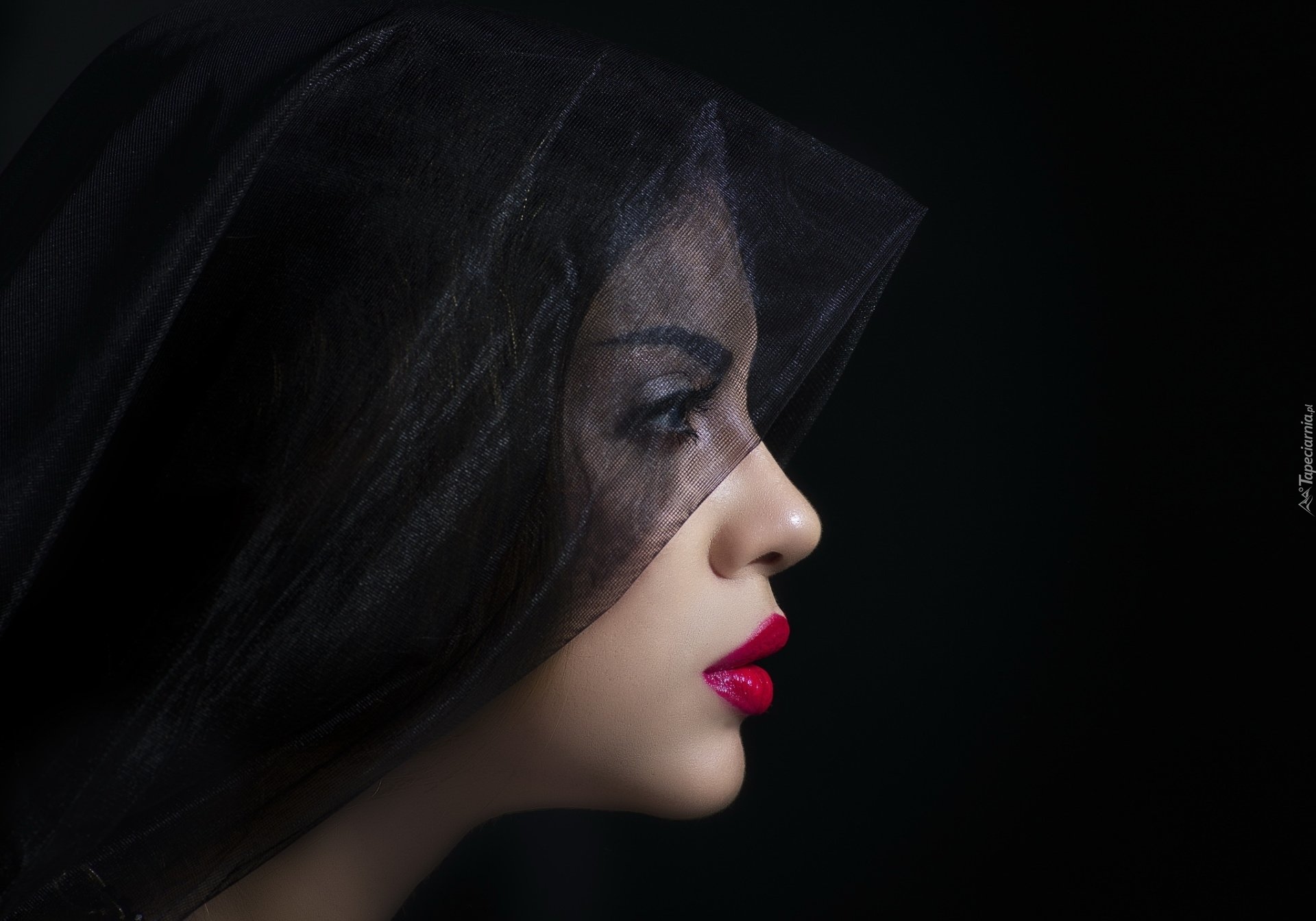 Edytor tapety: Profil kobiety przysłonięty czarnym tiulem