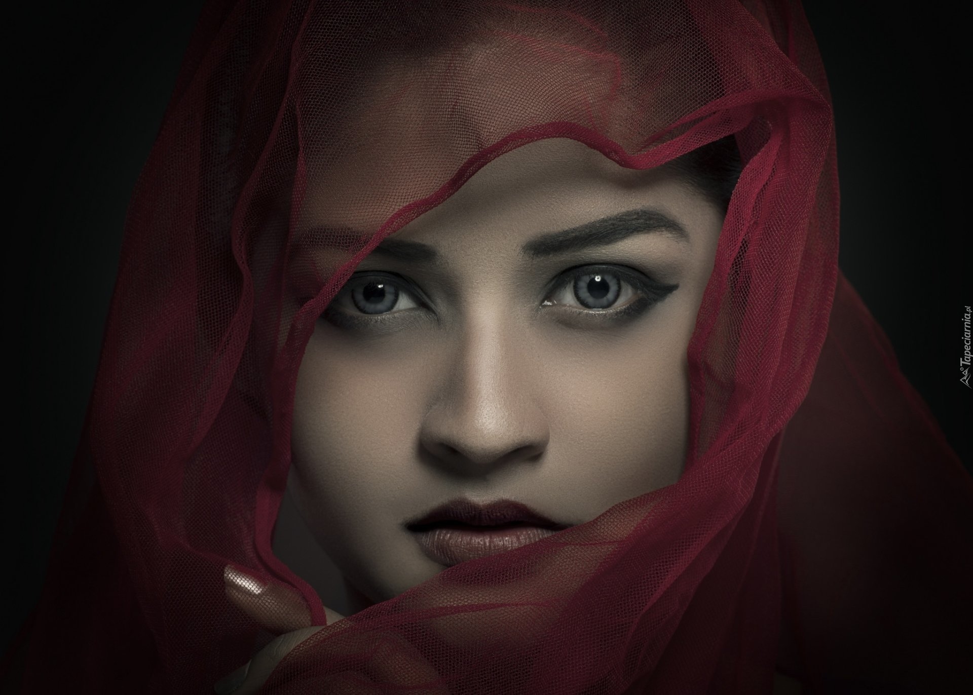 Edytor tapety: Twarz kobiety w tiulowej chuście