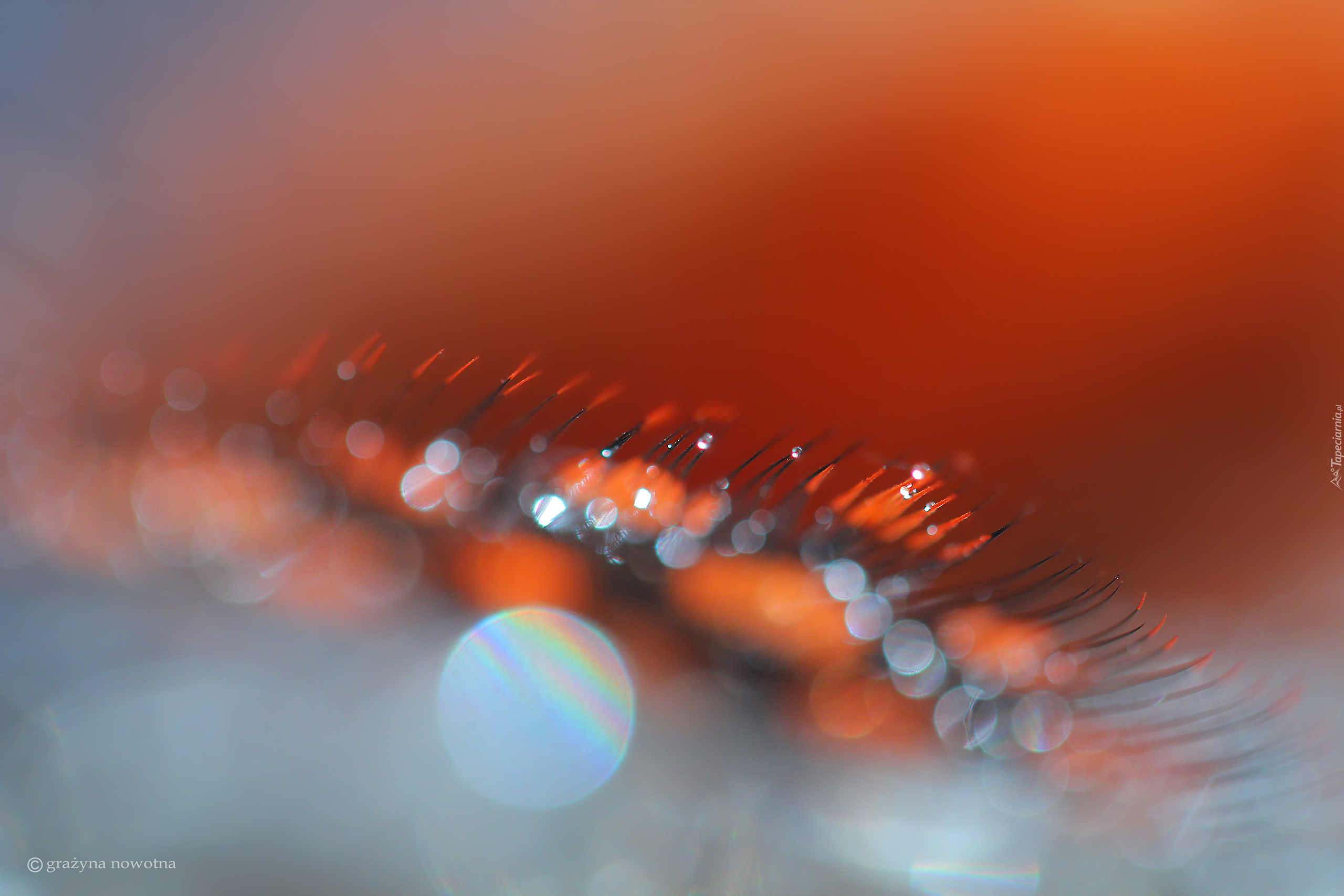 Edytor tapety: Krople na piórku w zbliżeniu z efektem blików