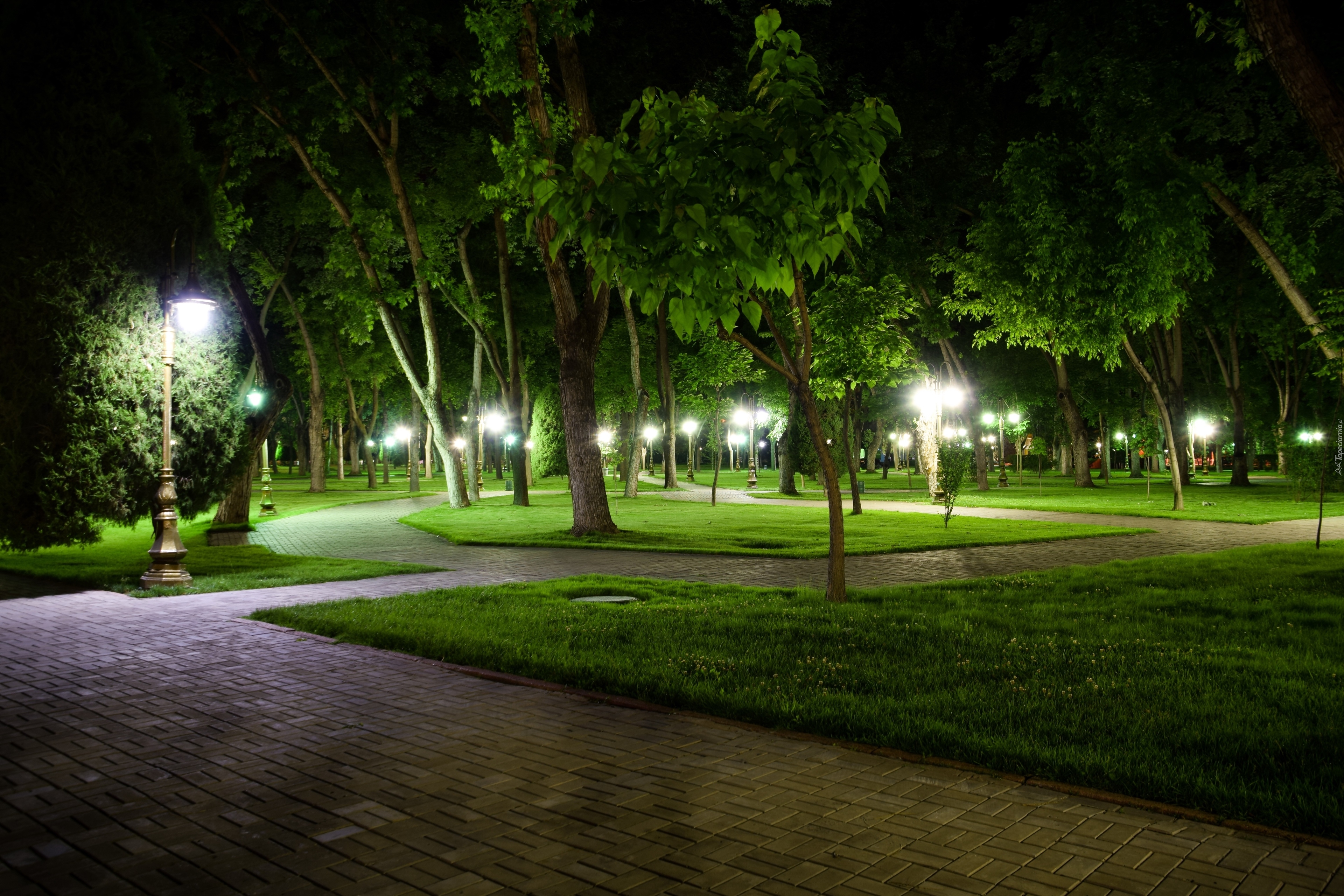 Edytor tapety: Alejki w parku oświetlone latarniami