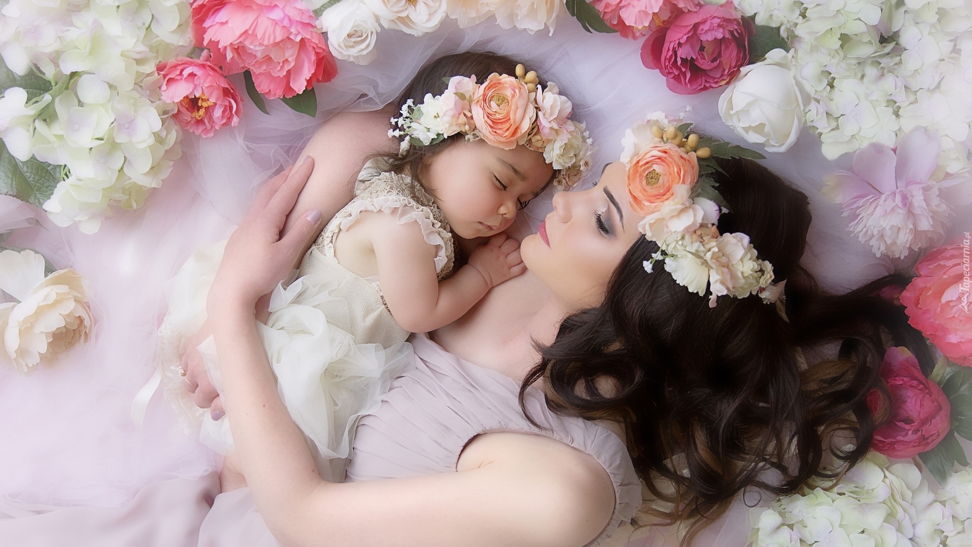 Edytor tapety: Kobieta obejmująca śpiące dziecko