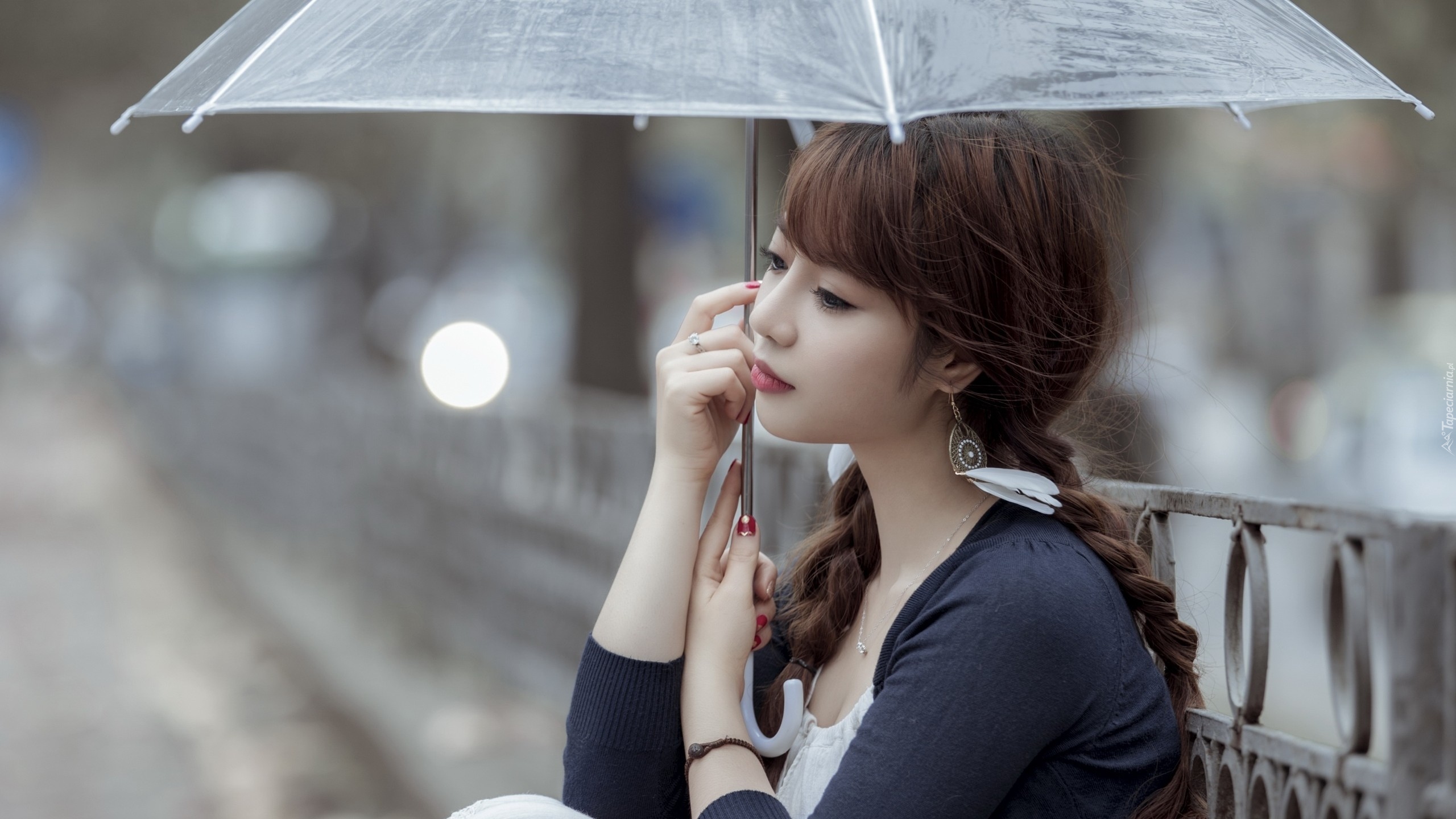 Edytor tapety: Wietnamska modelka Tran Ngoc Diep pod parasolką