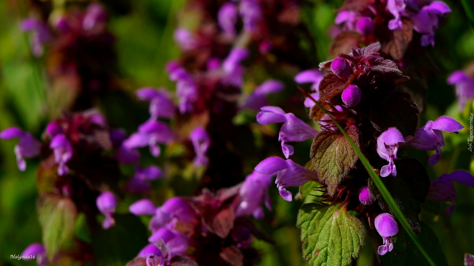 Edytor tapety: Fioletowe kwiatki jasnoty purpurowej