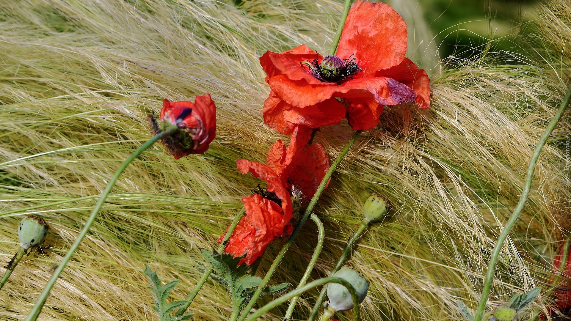 Edytor tapety: Maki leżące na trawie