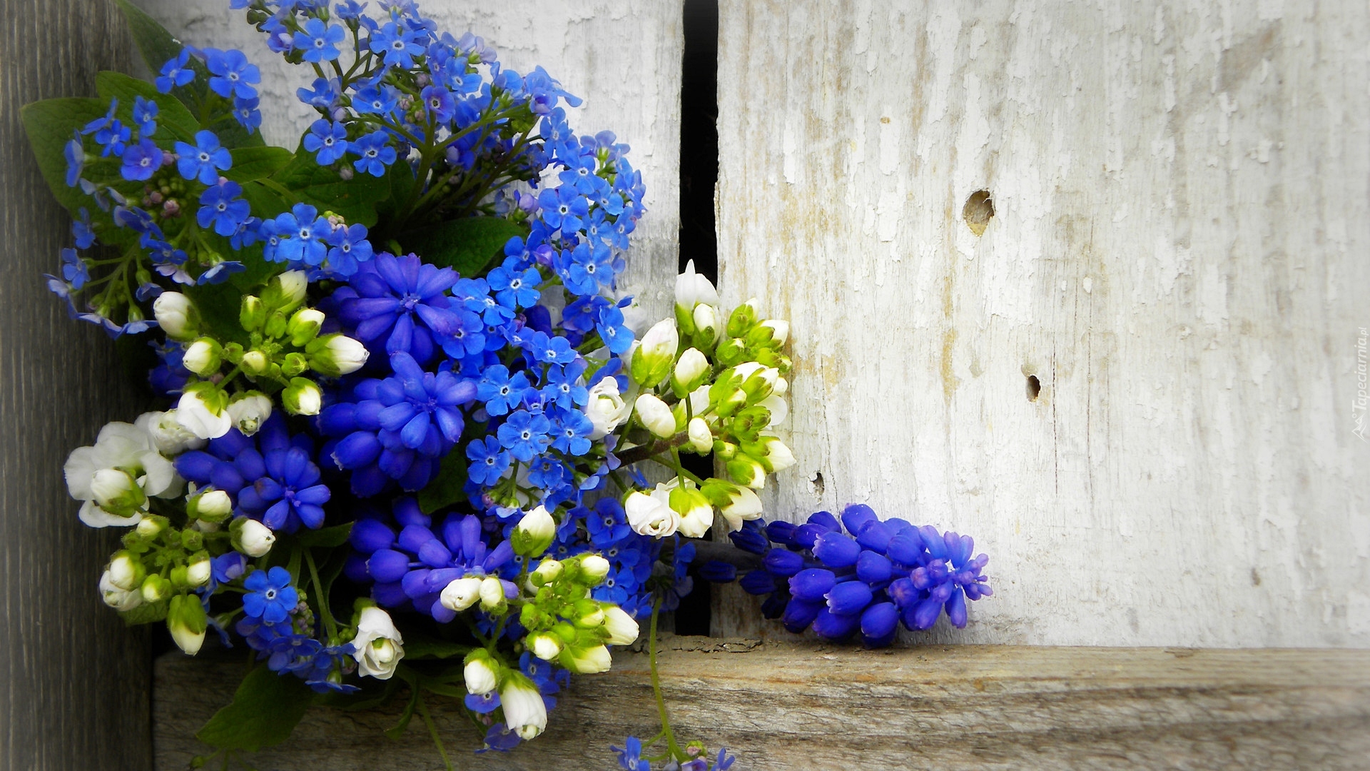 Edytor tapety: Niezapominajki i szafirki w bukiecie