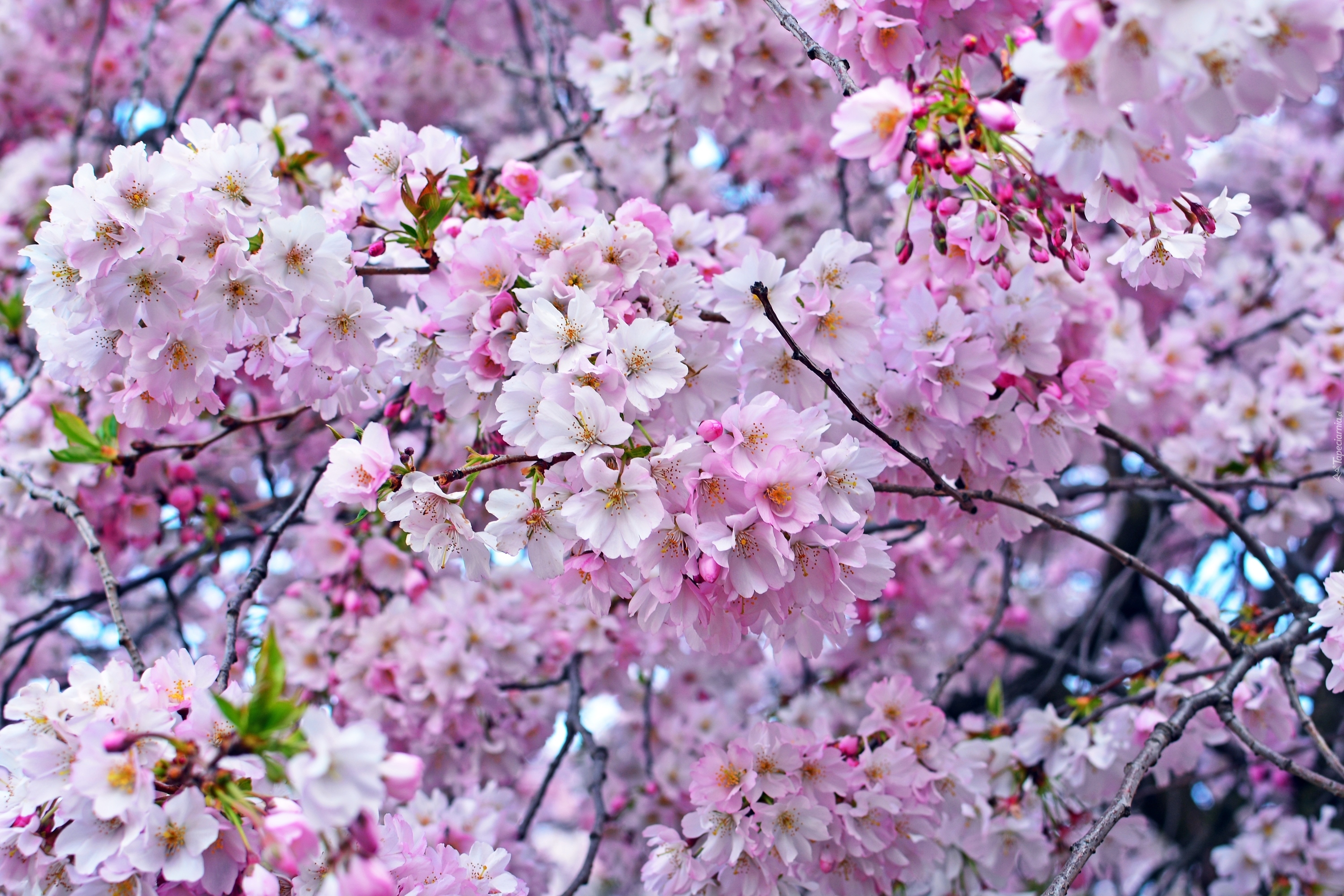 Edytor tapety: Drzewo wiśni zakwitło na różowo