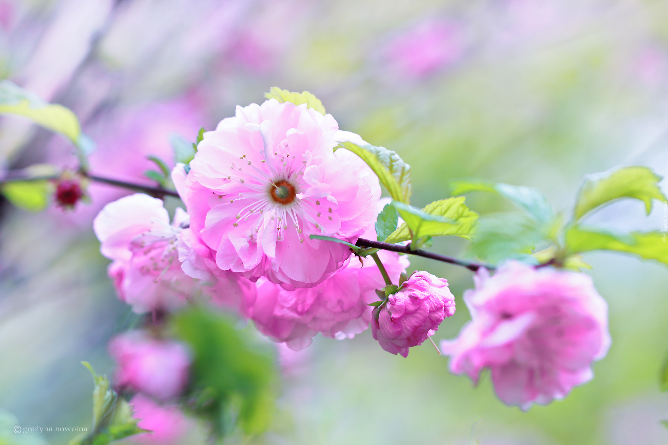 Edytor tapety: Różowe kwiaty migdałka na rozmytym tle