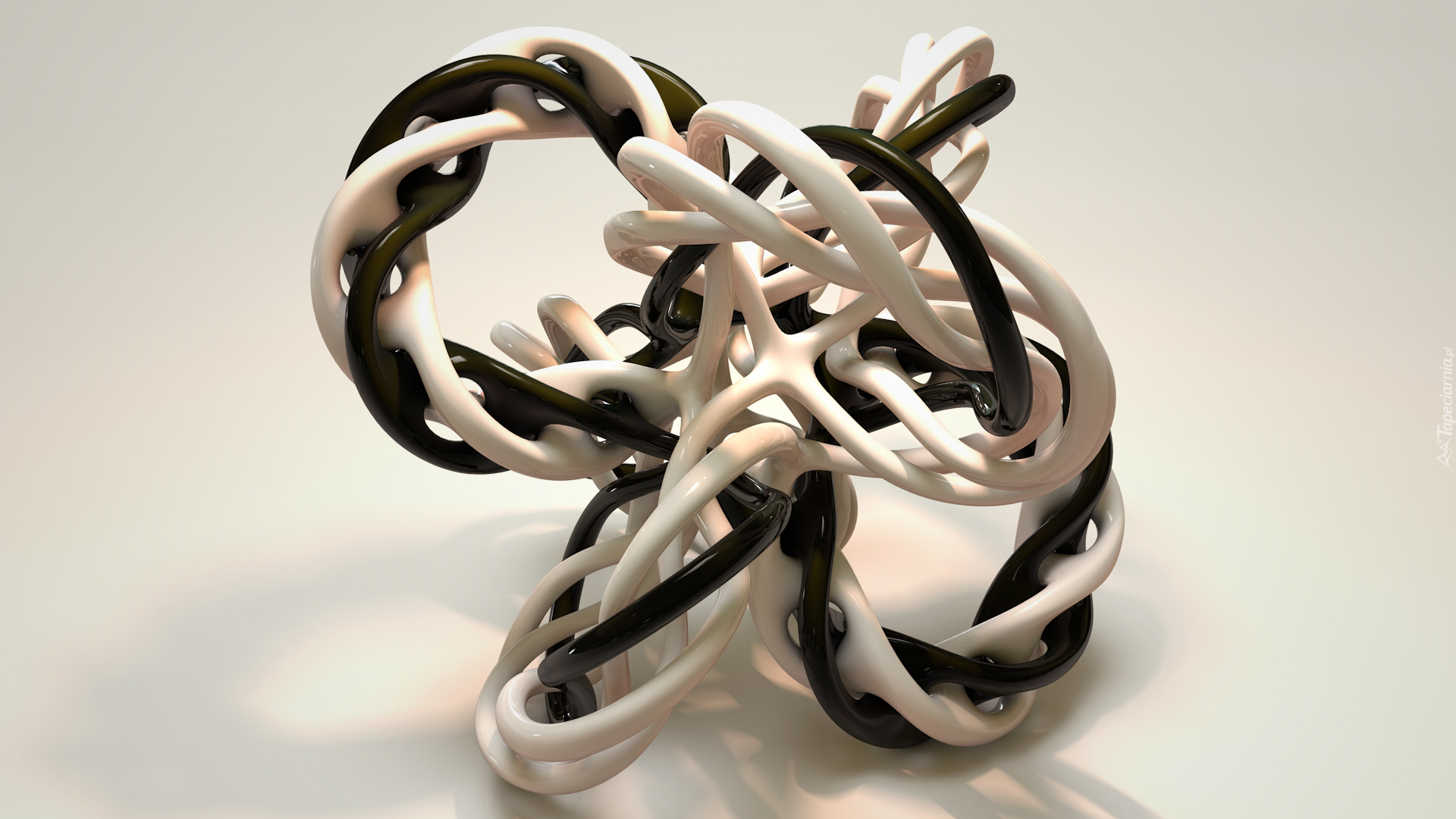 Edytor tapety: Poskręcany czarno-biały obiekt w grafice 3D