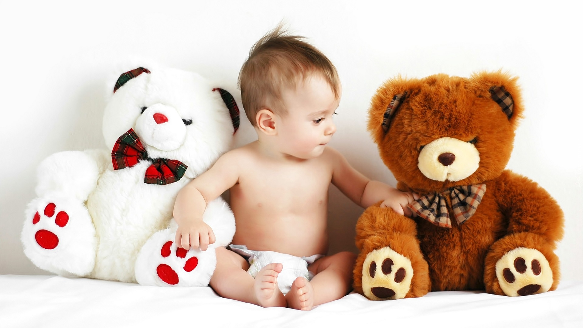 Edytor tapety: Chłopczyk w towarzystwie dwóch misiów