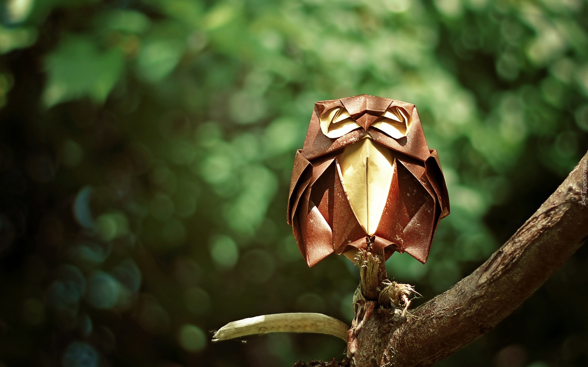 Edytor tapety: Origamowa sowa na gałęzi drzewa