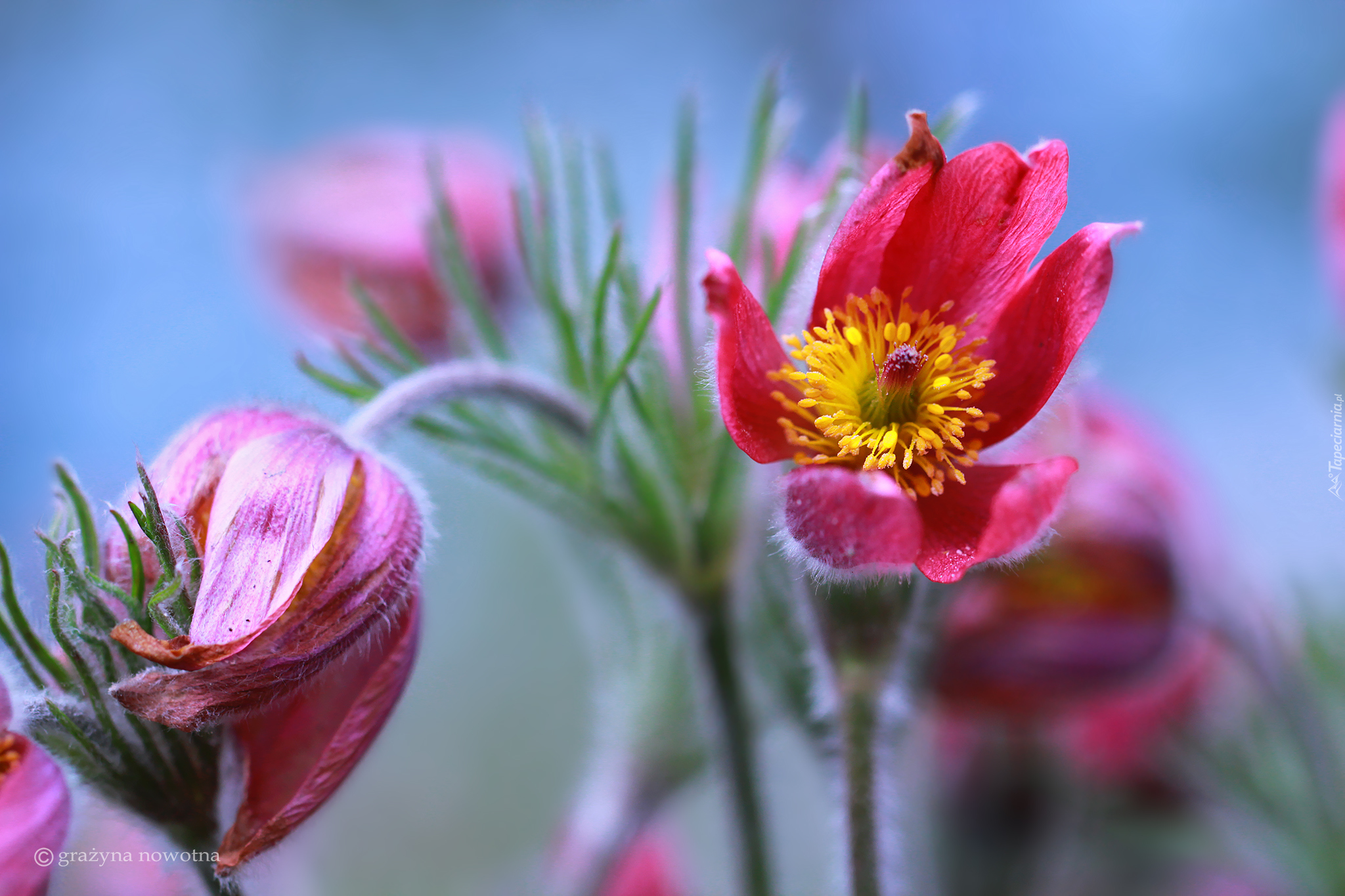 Edytor tapety: Różowe sasanki na rozmytym tle