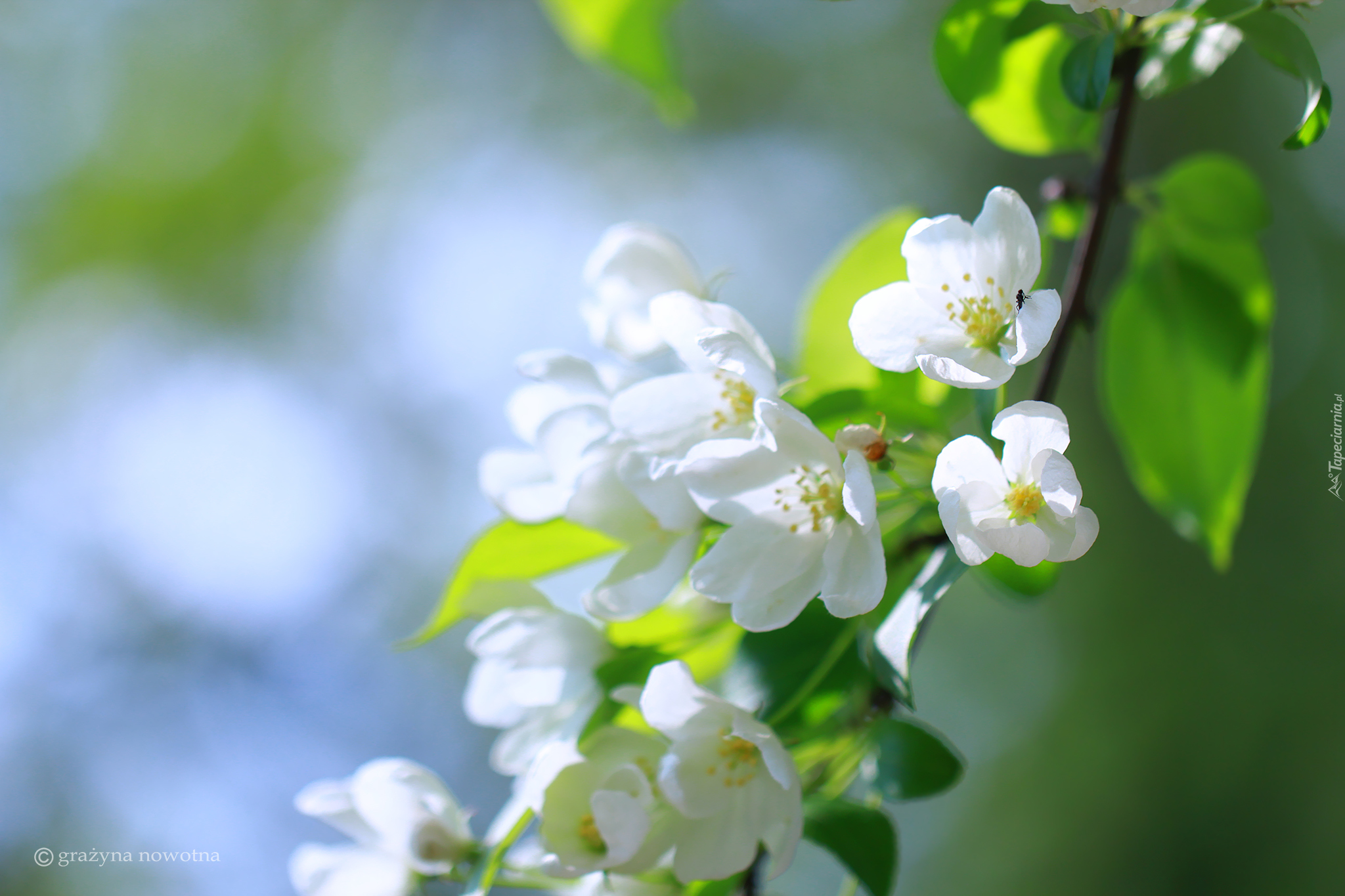 Edytor tapety: Kwitnąca gałązka jabłoni w słońcu