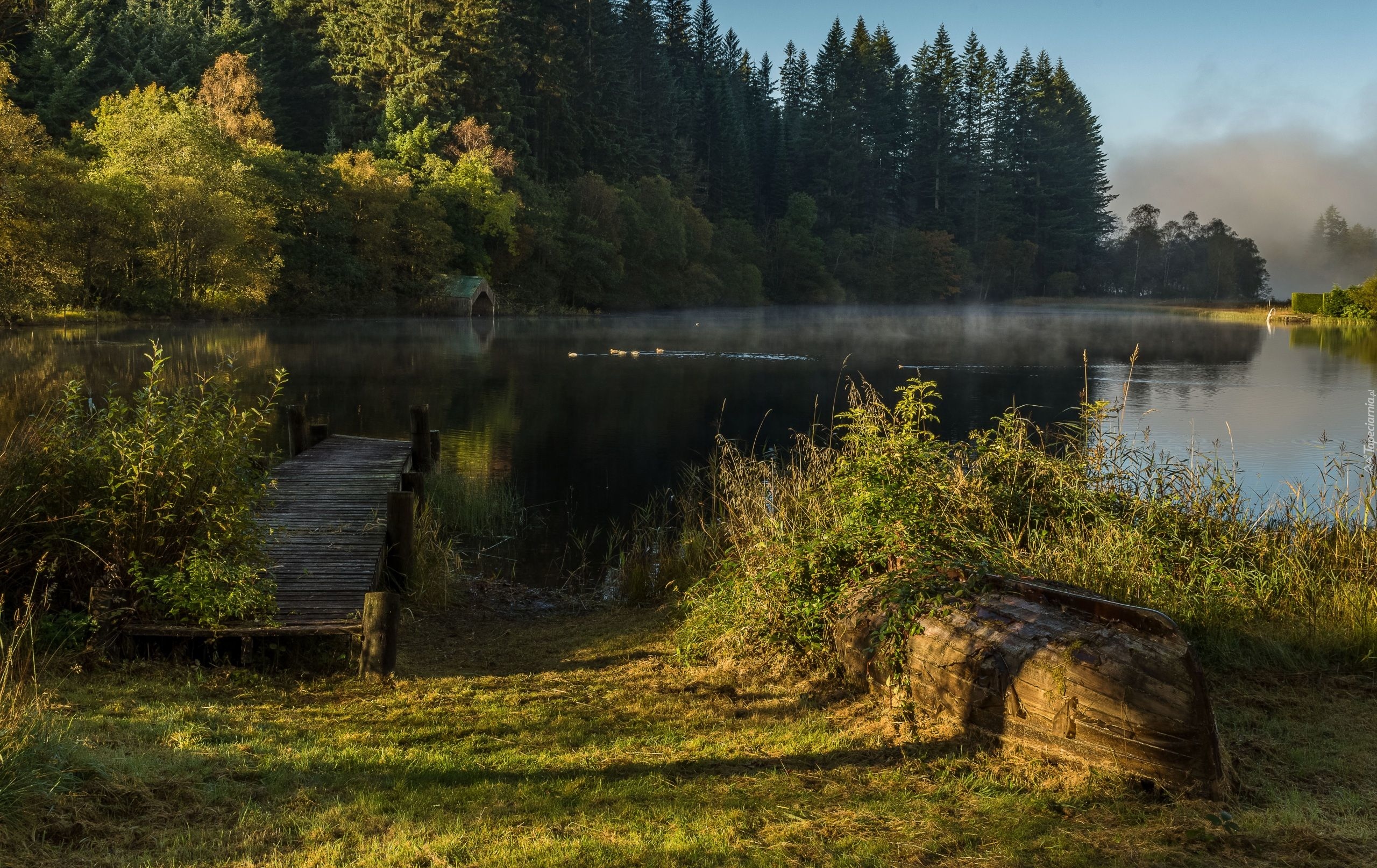 Edytor tapety: Pomost nad jeziorem w szkockim Trossachs