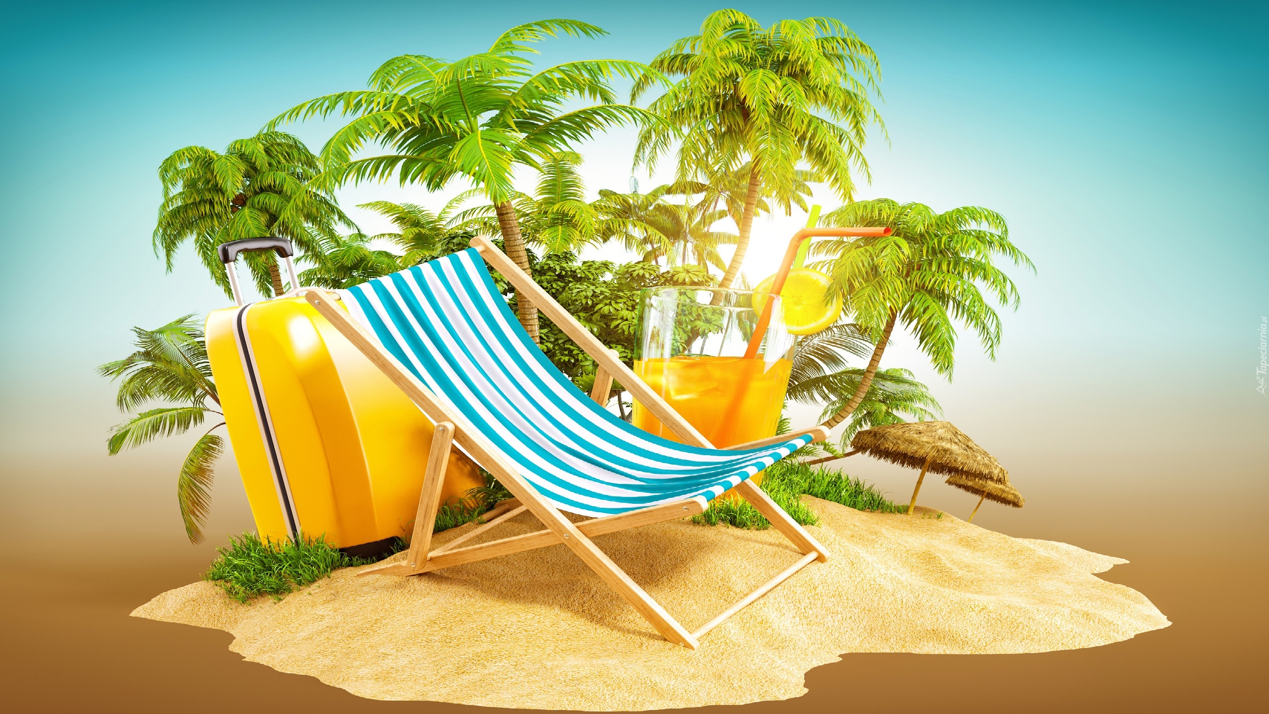 Edytor tapety: Niezbędnik turysty pod palmami w grafice 2D