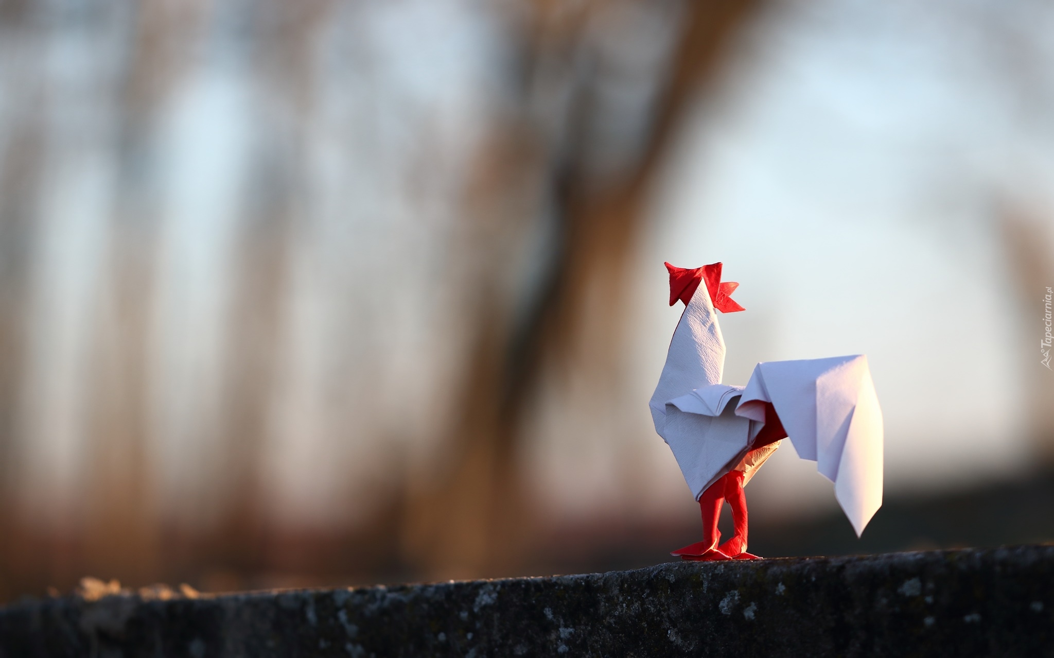 Edytor tapety: Origamowy kogucik na murku