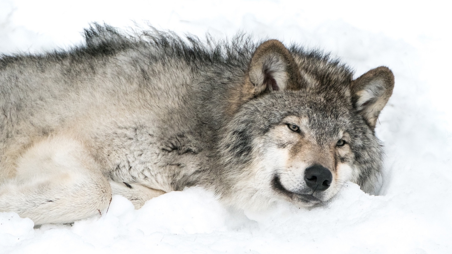 Edytor tapety: Wilk leżący na śniegu