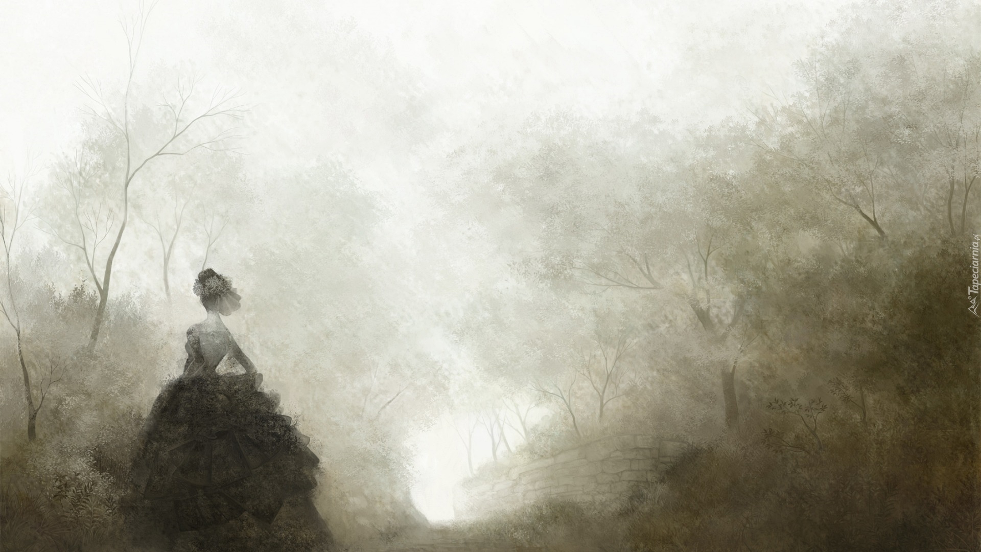 Edytor tapety: Kobieta spaceruje we mgle
