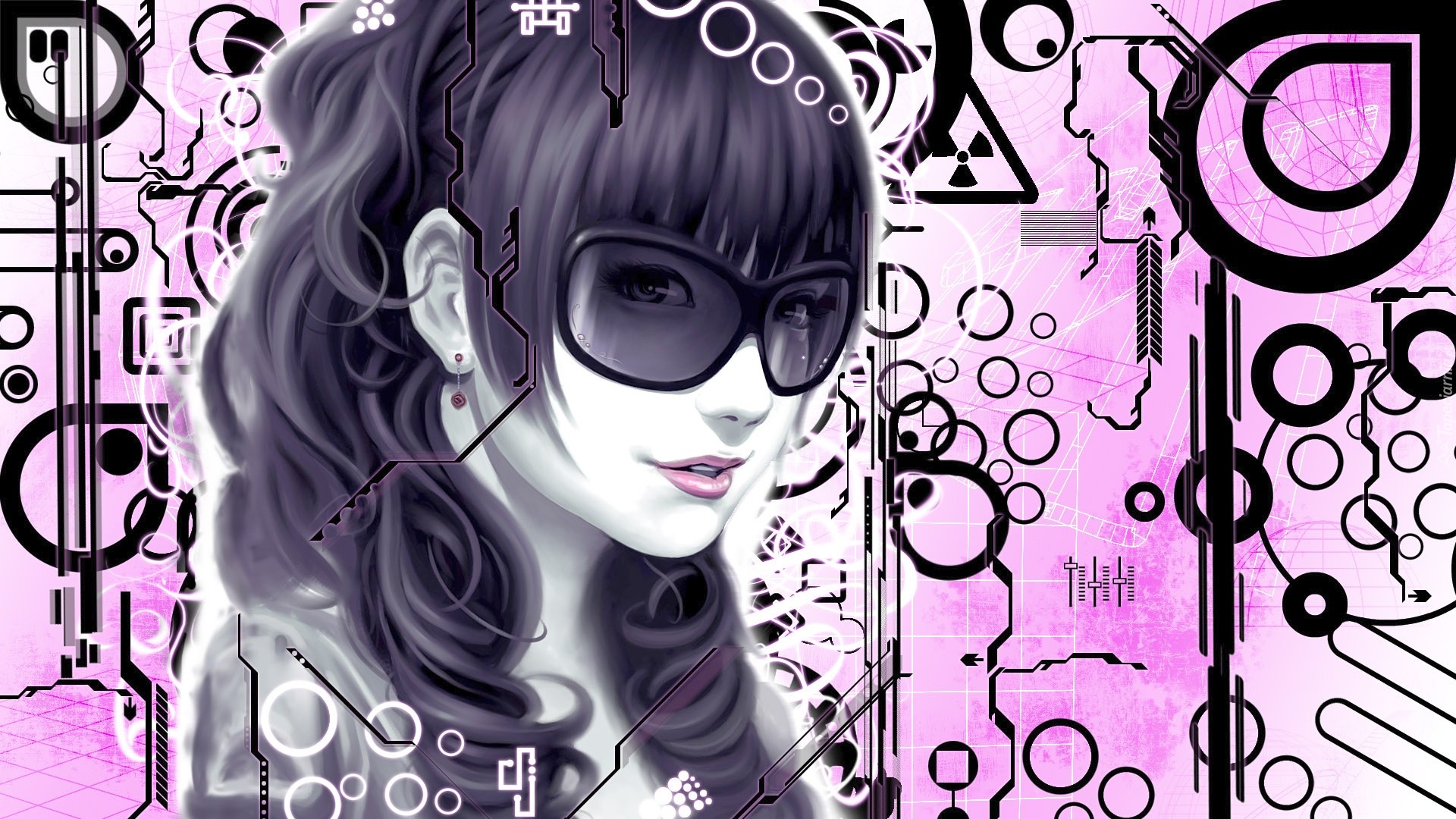 Edytor tapety: Kobieta w okularach na wzorzystym tle