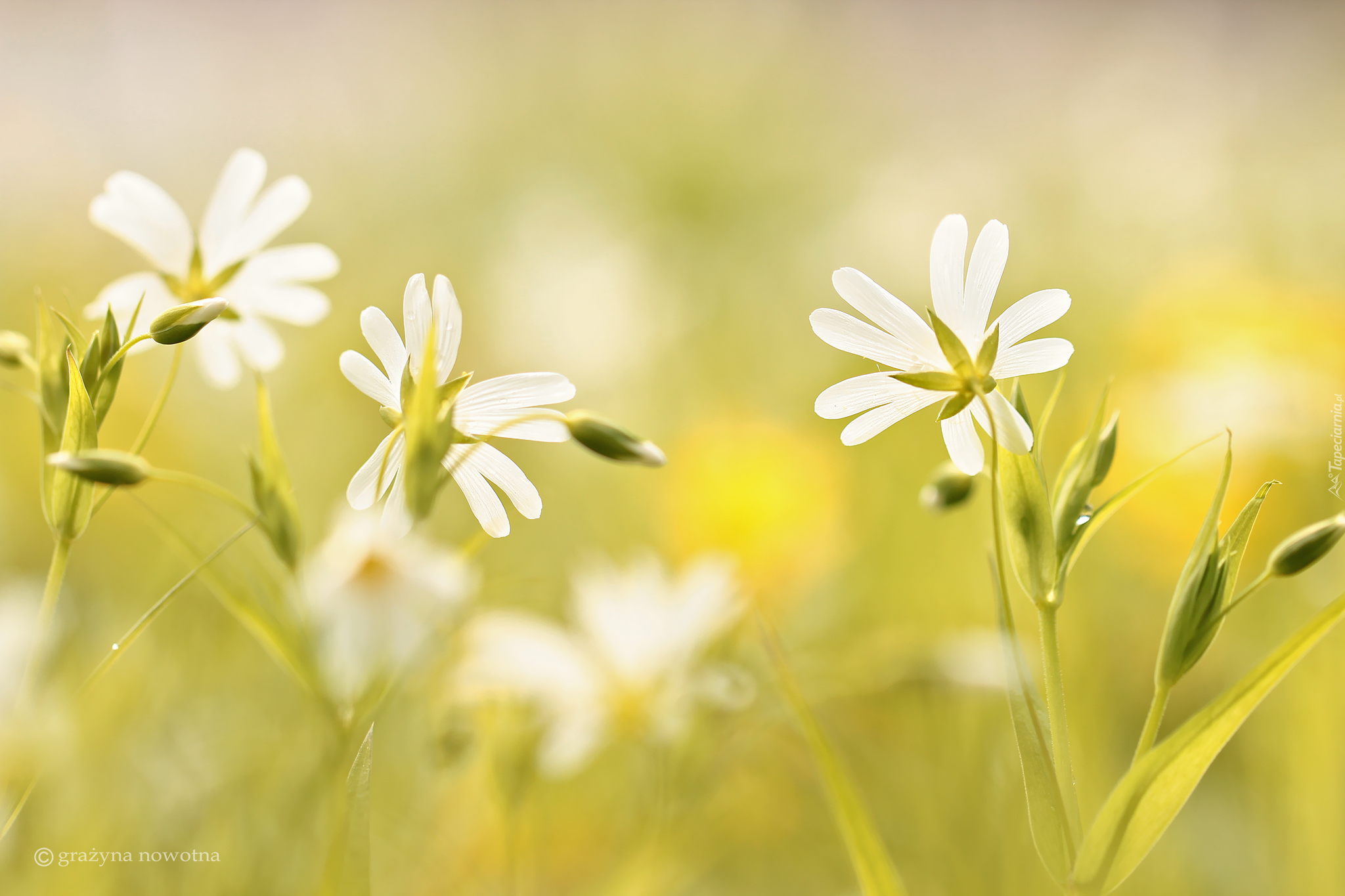 Edytor tapety: Pąki i kwiaty gwiazdnicy wielkokwiatowej w rozmyciu