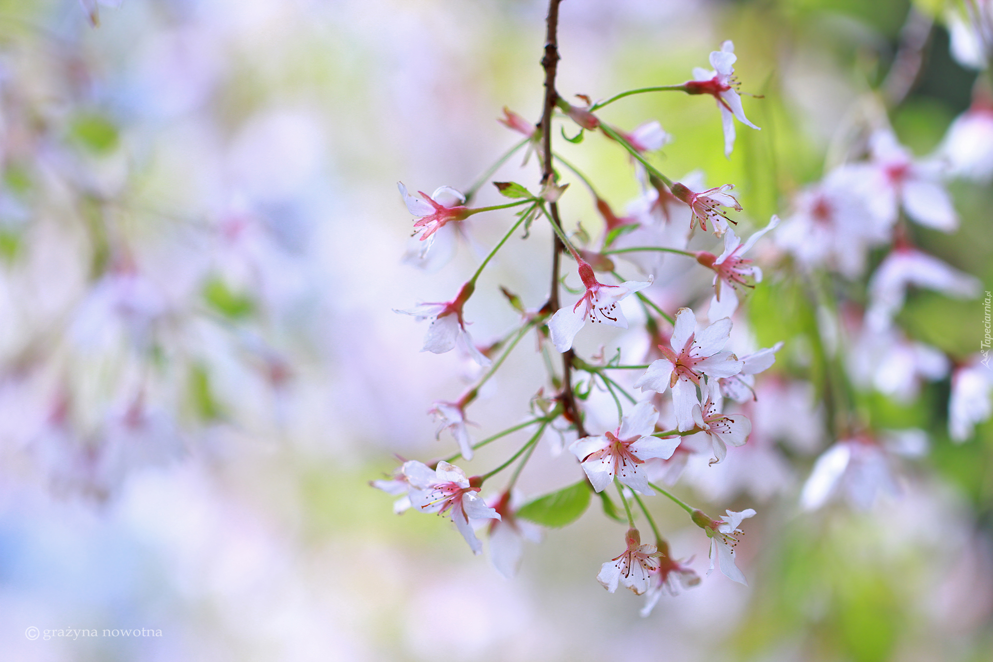 Edytor tapety: Wisząca gałązka kwitnącej wiśni
