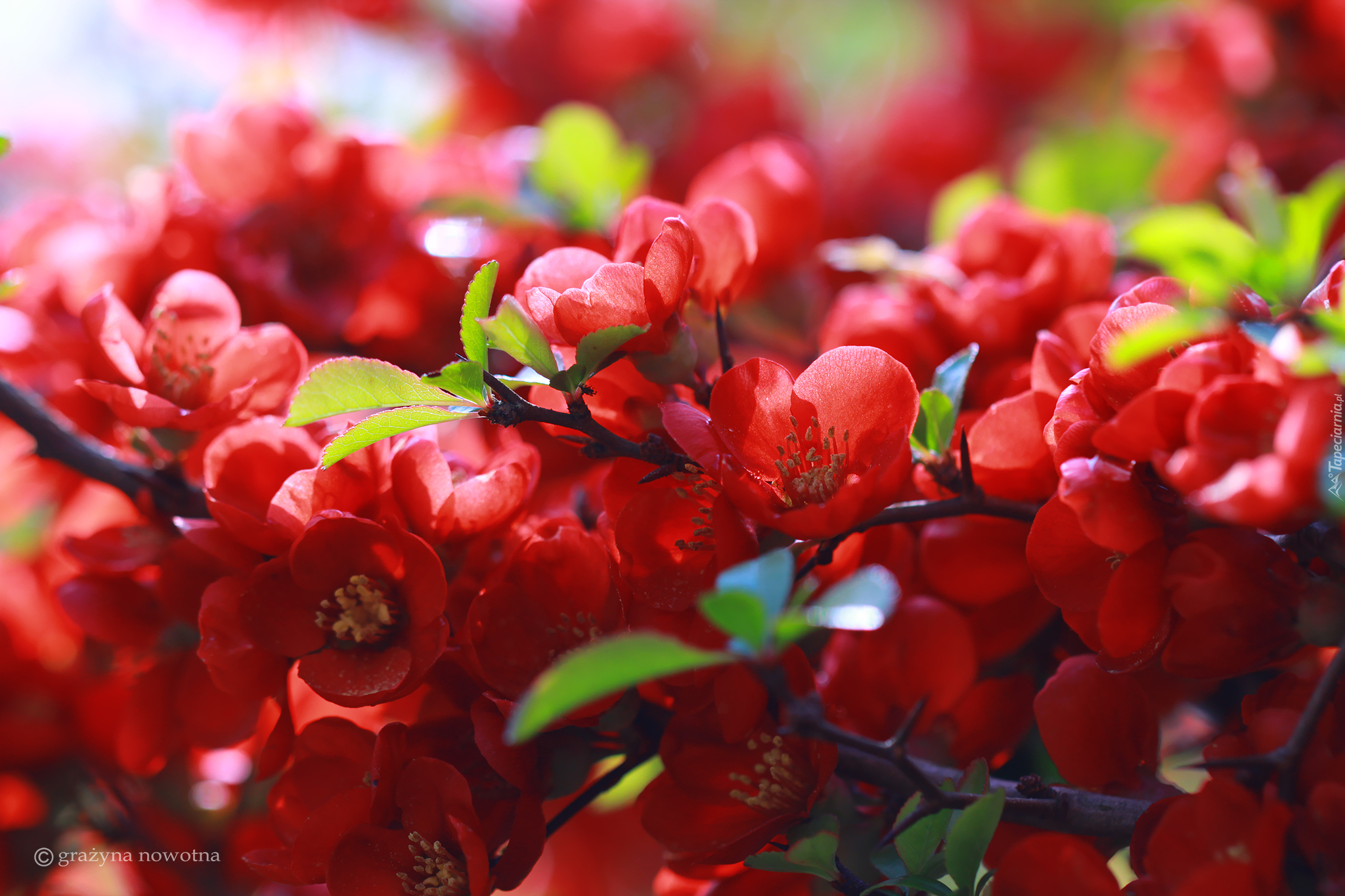 Edytor tapety: Czerwone kwiaty pigwowca okazałego