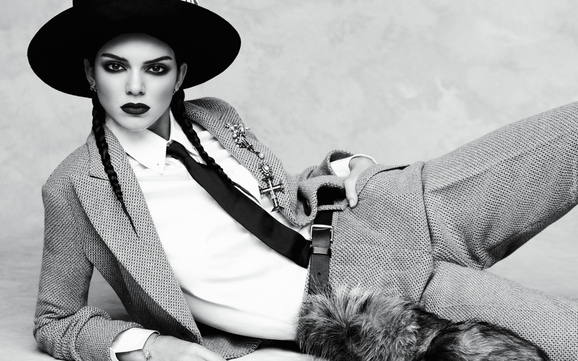 Edytor tapety: Modelka Kendall Jenner w twarzowym kapeluszu i garniturze