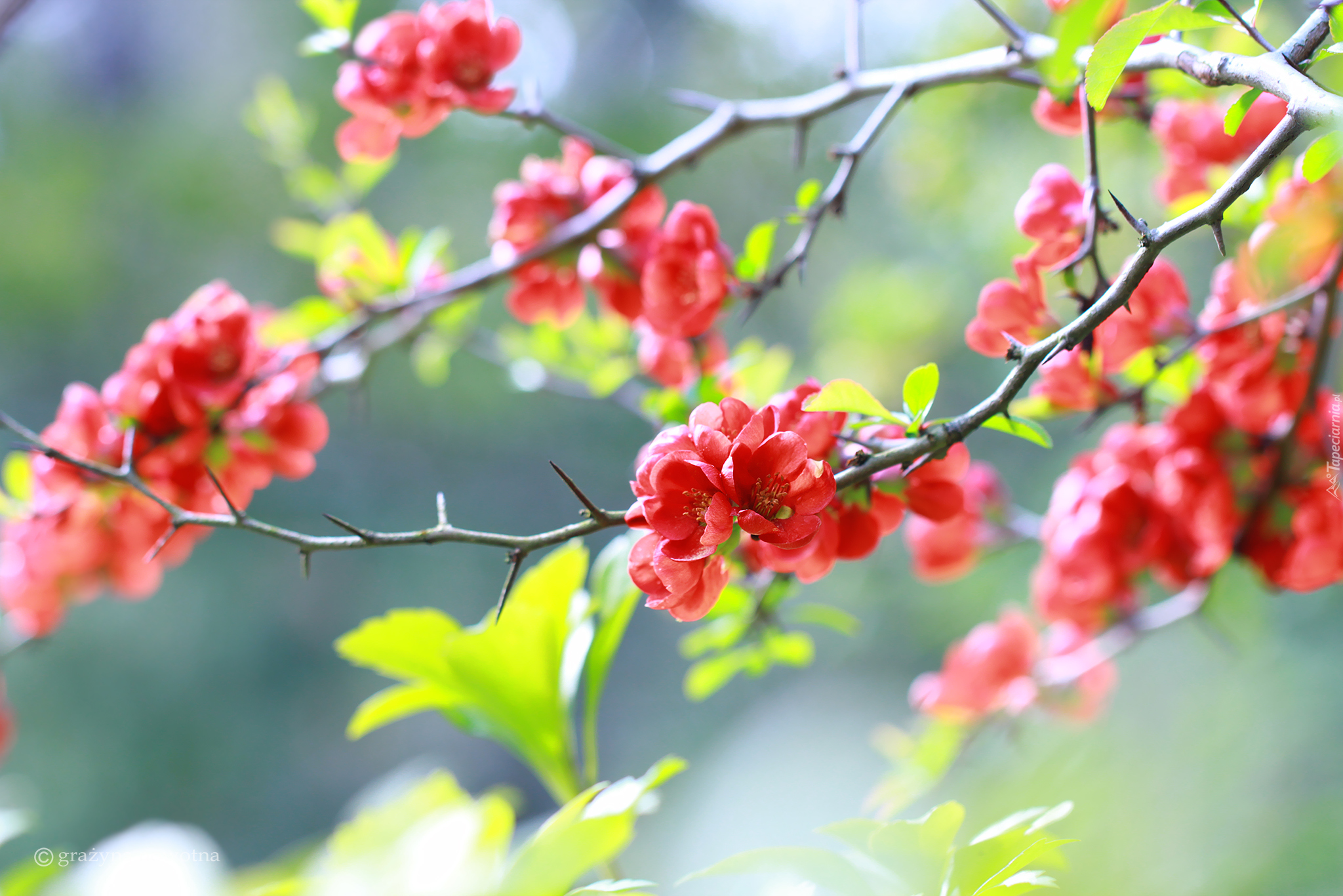 Edytor tapety: Kwitnące gałązki pigwowca japońskiego