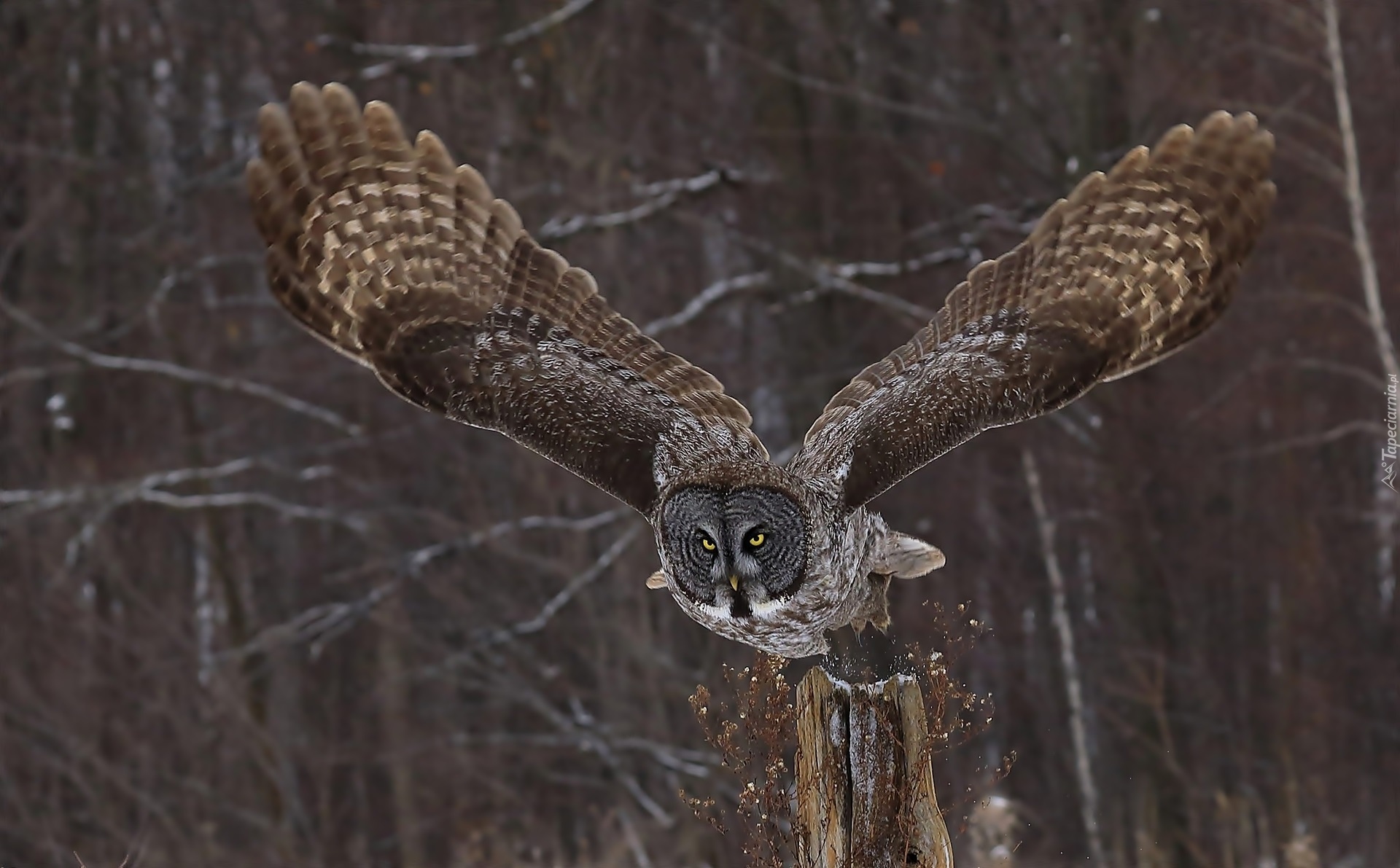 Edytor tapety: Rozpostarte skrzydła puszczyka mszarnego