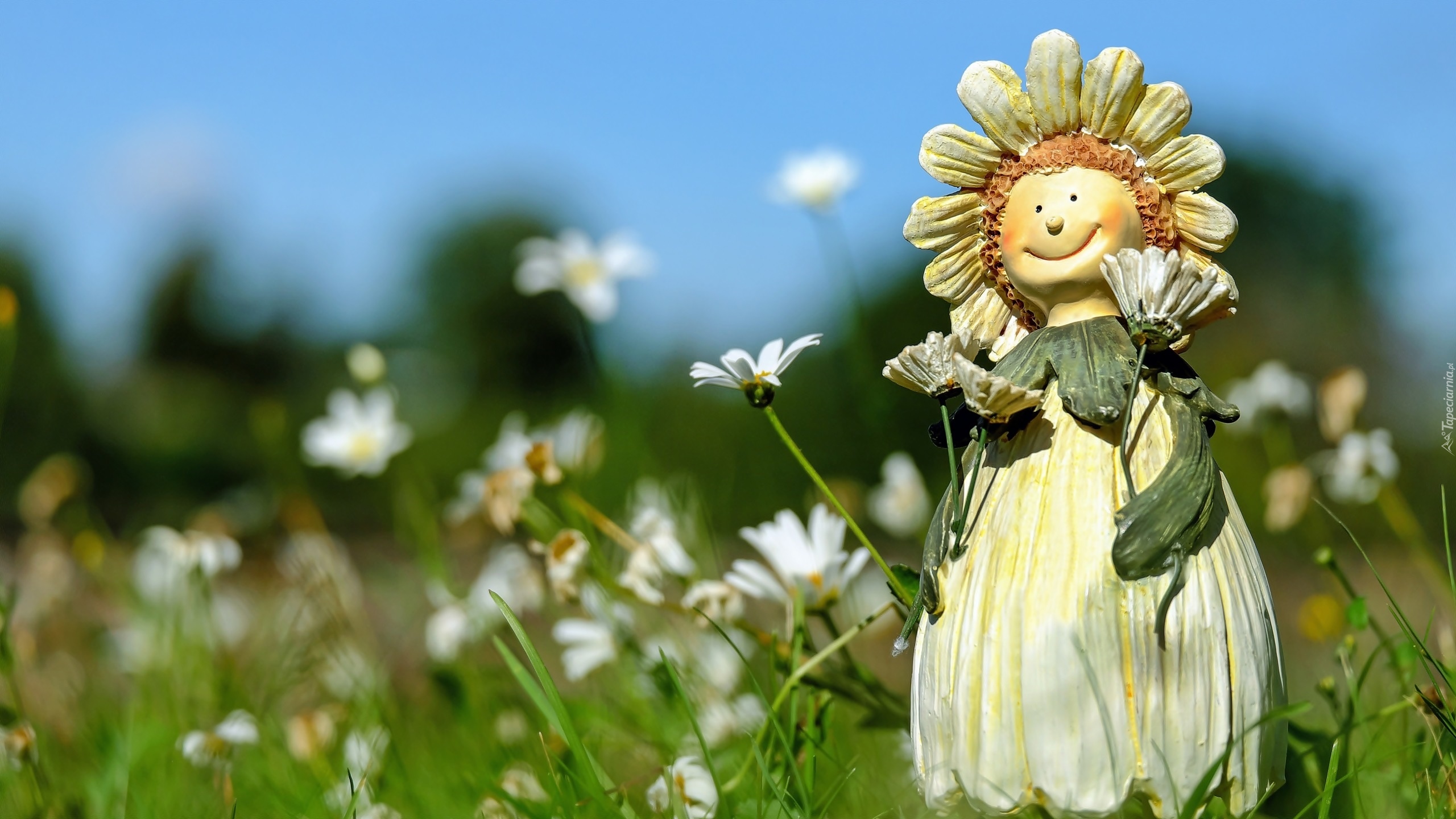 Edytor tapety: Figurka ustawiona wśród kwiatów na łące