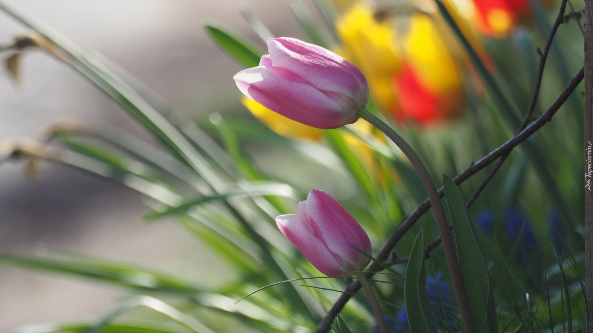 Edytor tapety: Kolorowe tulipany na rozmytym tle