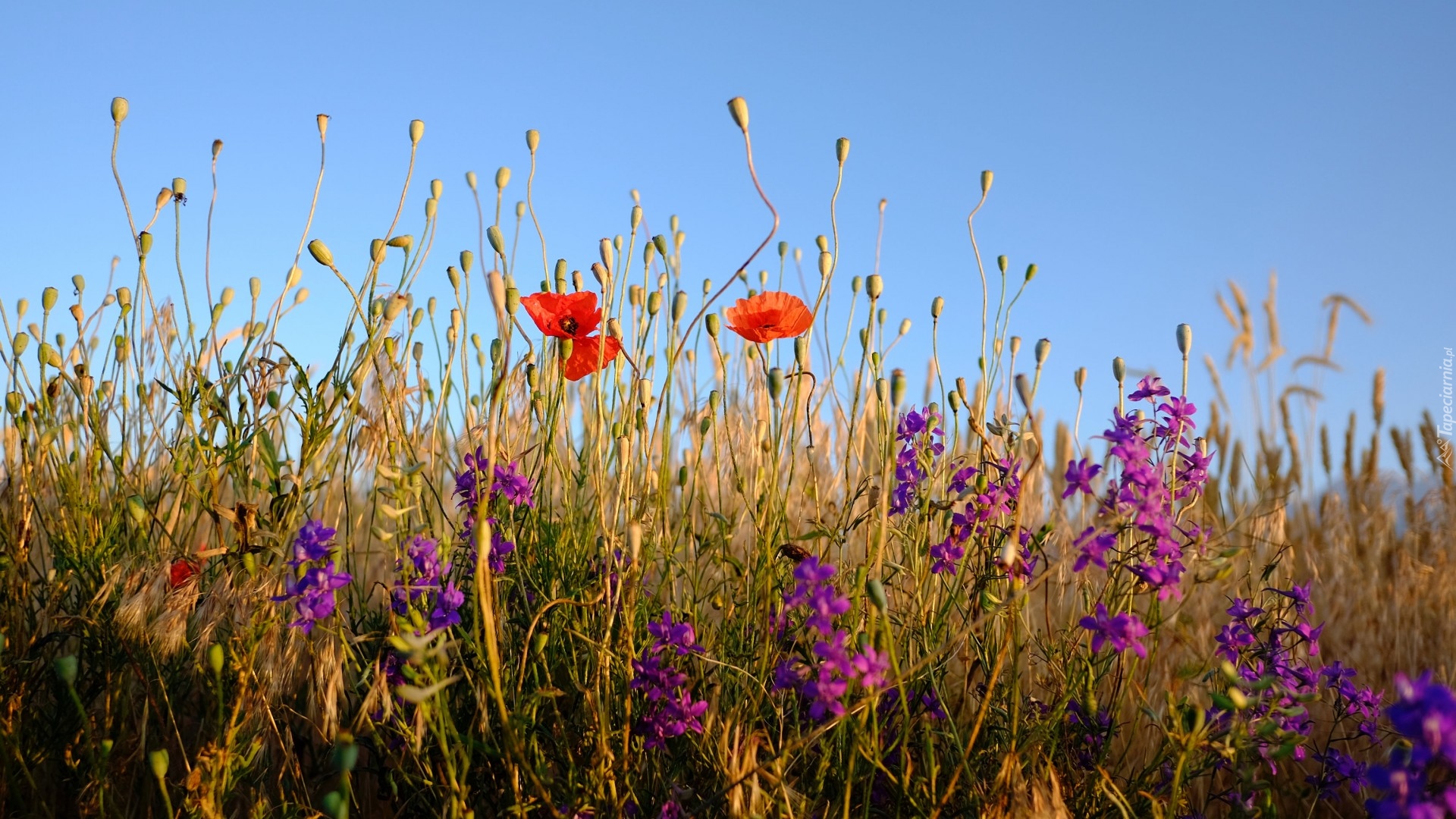 Edytor tapety: Polne kwiaty w słońcu na tle nieba