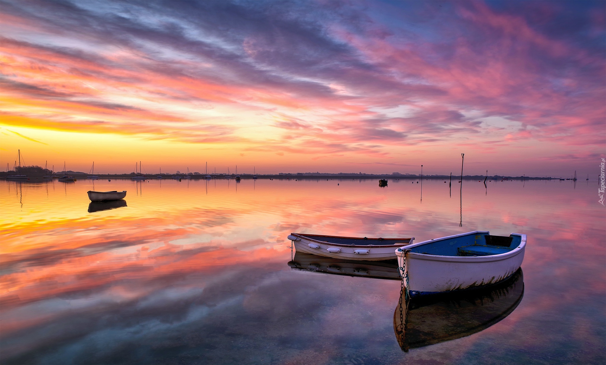 Edytor tapety: Łódki na jeziorze o świcie