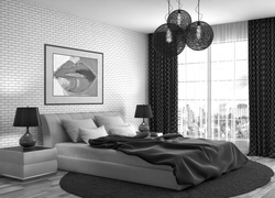 Edytor tapety: Umeblowana sypialnia z obrazem na ścianie