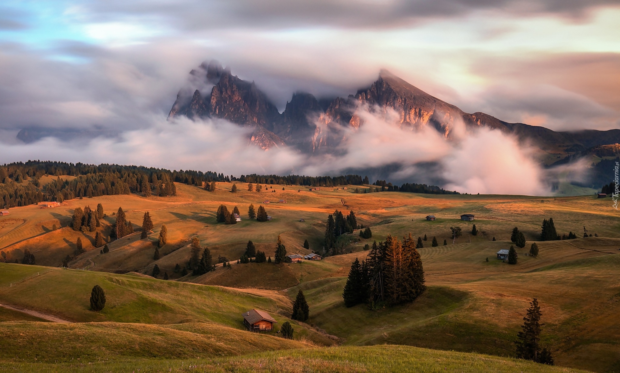 Edytor tapety: Płaskowyż Seiser Alm w Dolomitach jesienią